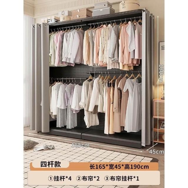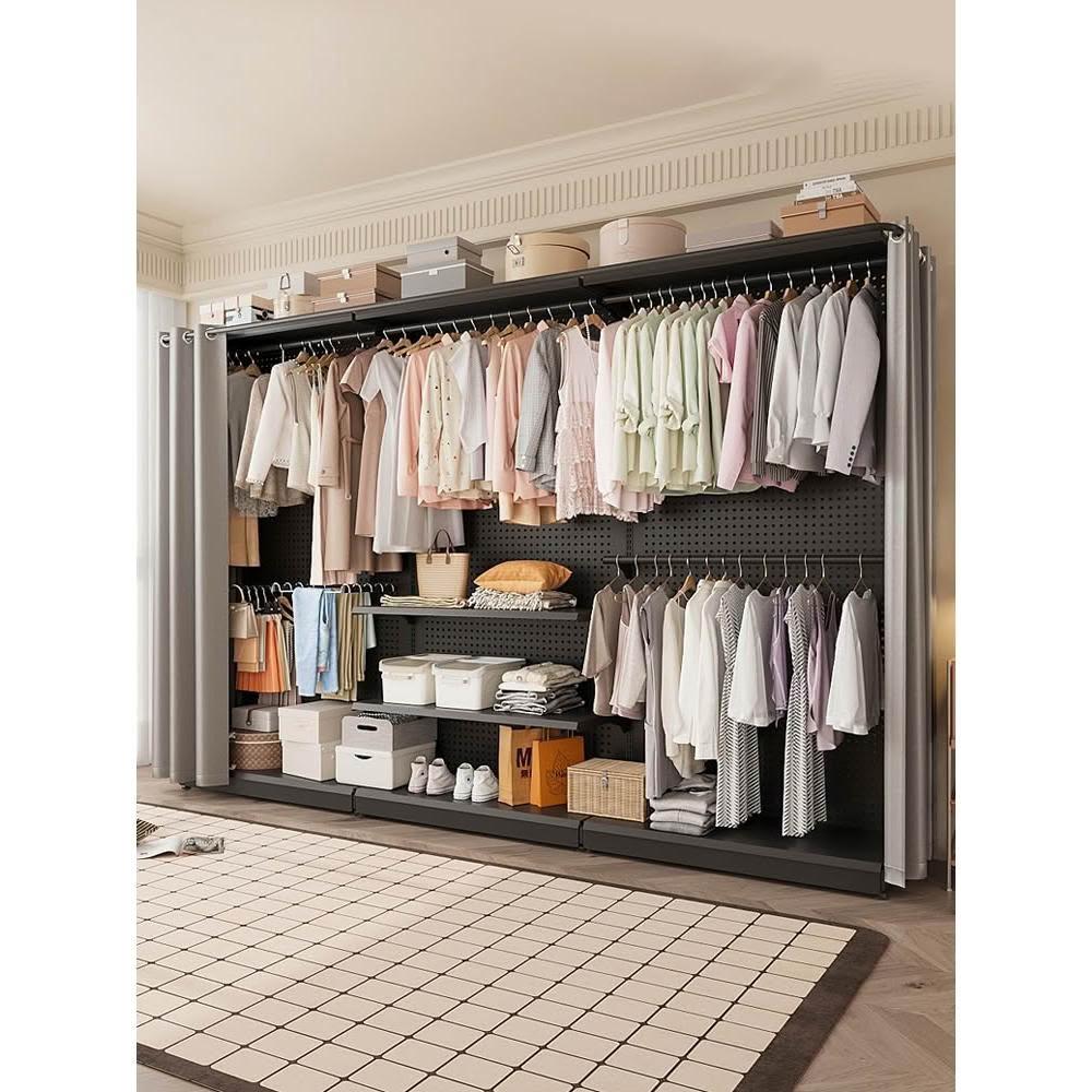 免運❤️洞洞板簡易衣櫃 臥室家用組裝金屬衣櫥 開放式防塵簾掛衣架(易組裝,免工具,模塊化,可拆卸,便攜,組裝便捷)
