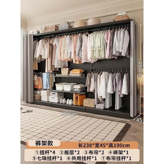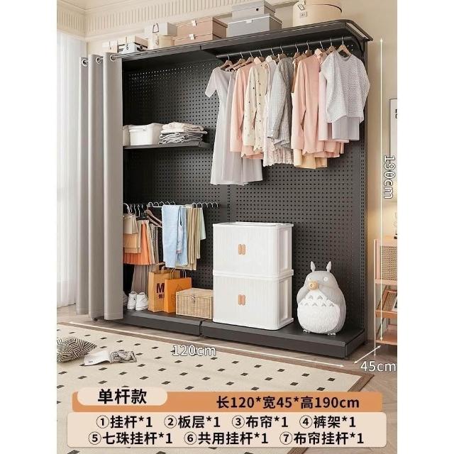 免運❤️洞洞板簡易衣櫃 臥室家用組裝金屬衣櫥 開放式防塵簾掛衣架(易組裝,免工具,模塊化,可拆卸,便攜,組裝便捷)