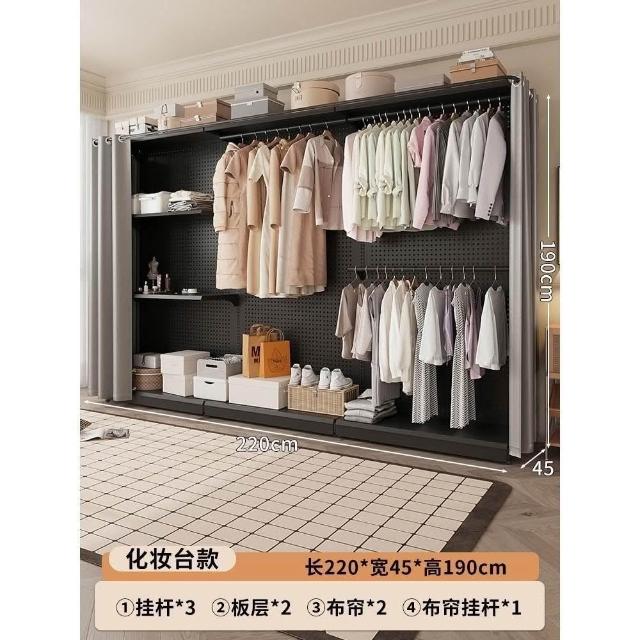 免運❤️洞洞板簡易衣櫃 臥室家用組裝金屬衣櫥 開放式防塵簾掛衣架(易組裝,免工具,模塊化,可拆卸,便攜,組裝便捷)