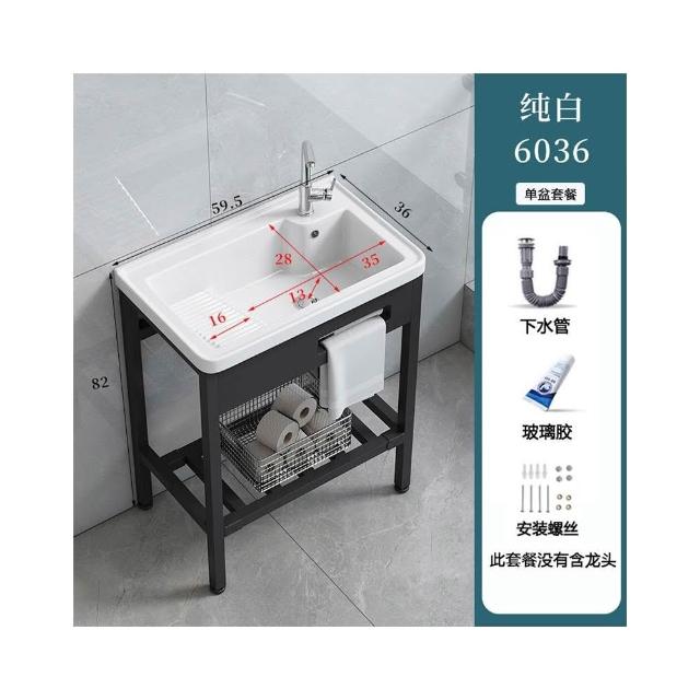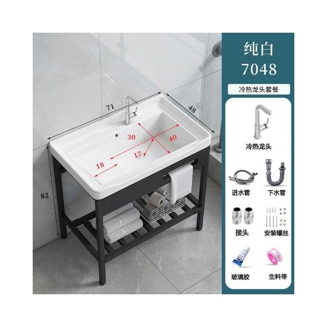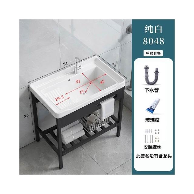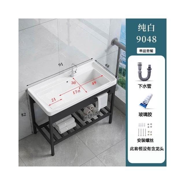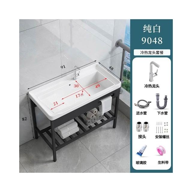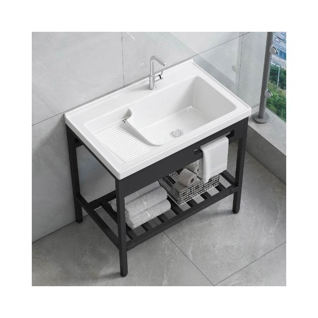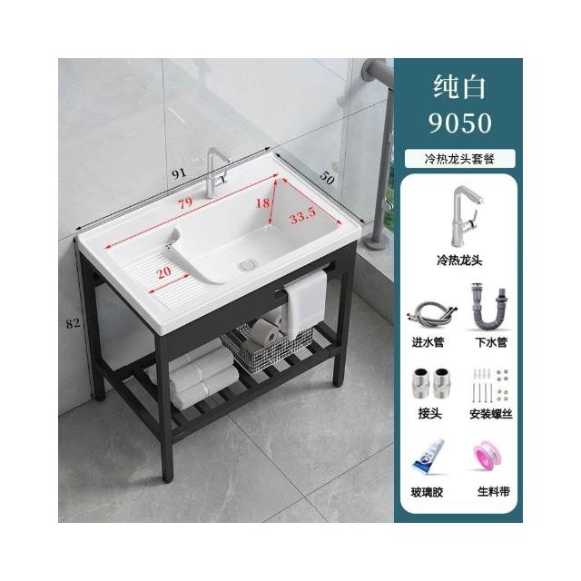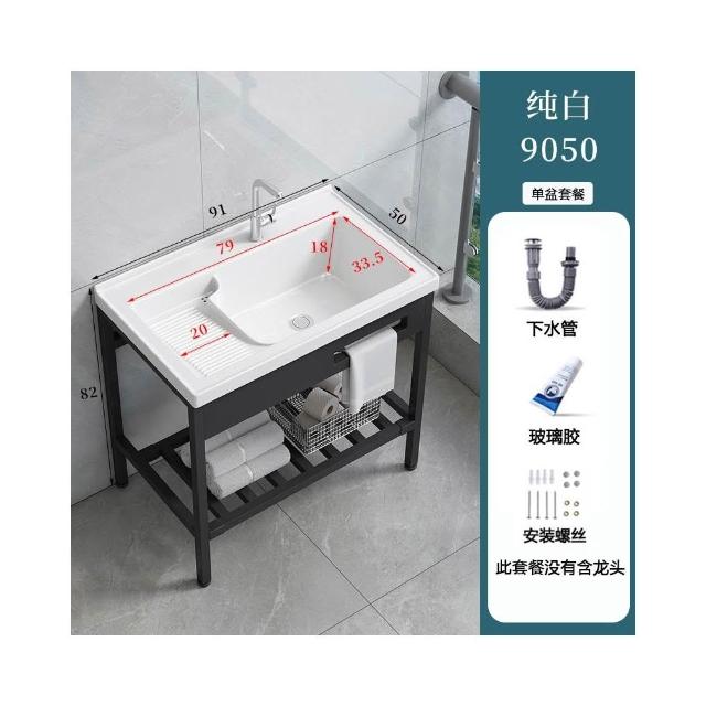 熱賣🔥免打孔落地式不銹鋼支架 洗衣盆帶搓衣板加深陽臺陶瓷洗手臺盆一體