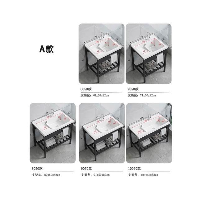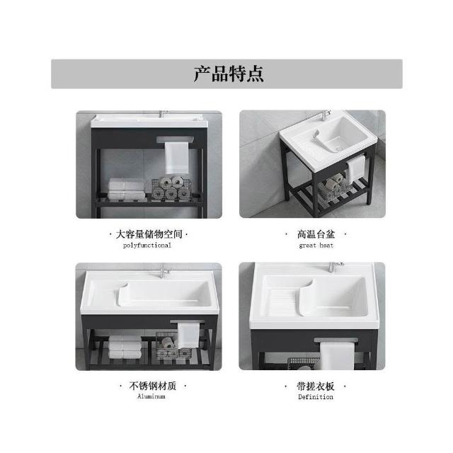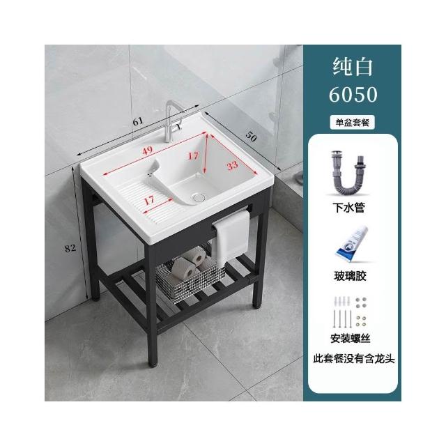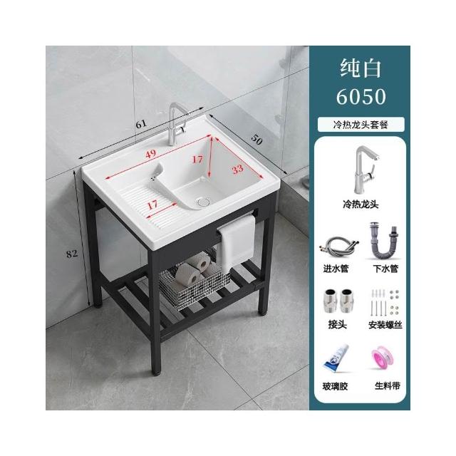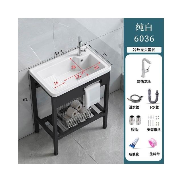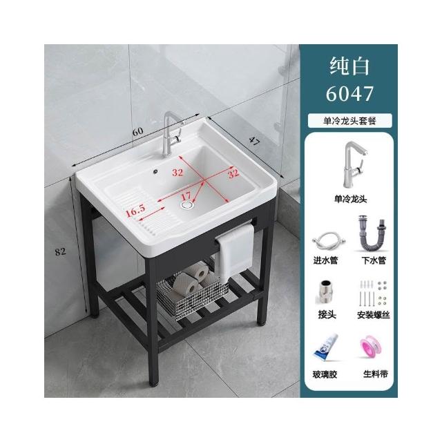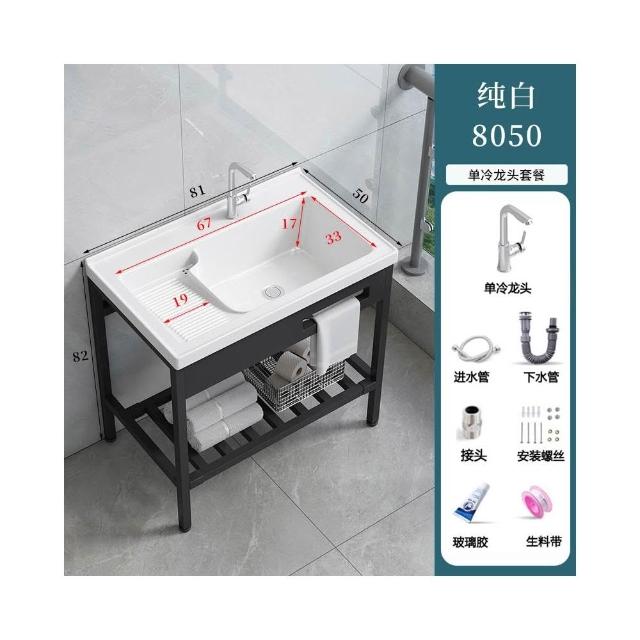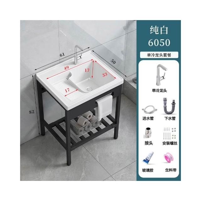熱賣🔥免打孔落地式不銹鋼支架 洗衣盆帶搓衣板加深陽臺陶瓷洗手臺盆一體