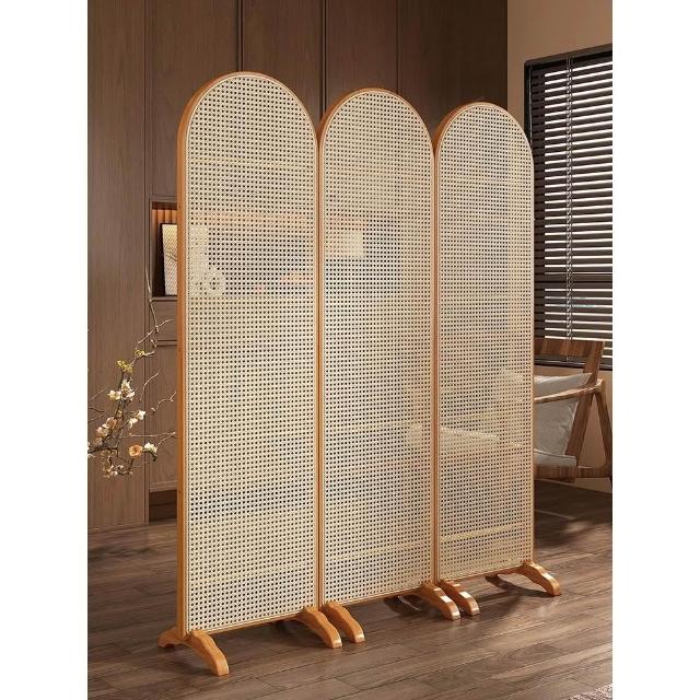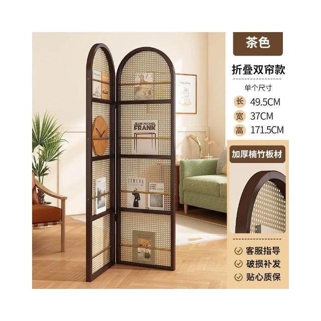 質量保證🔥藤編屏風隔斷客廳折疊可移動 實木小戶型遮擋入戶簡約雜誌書架
