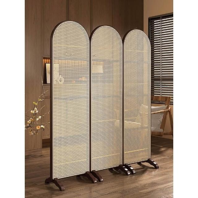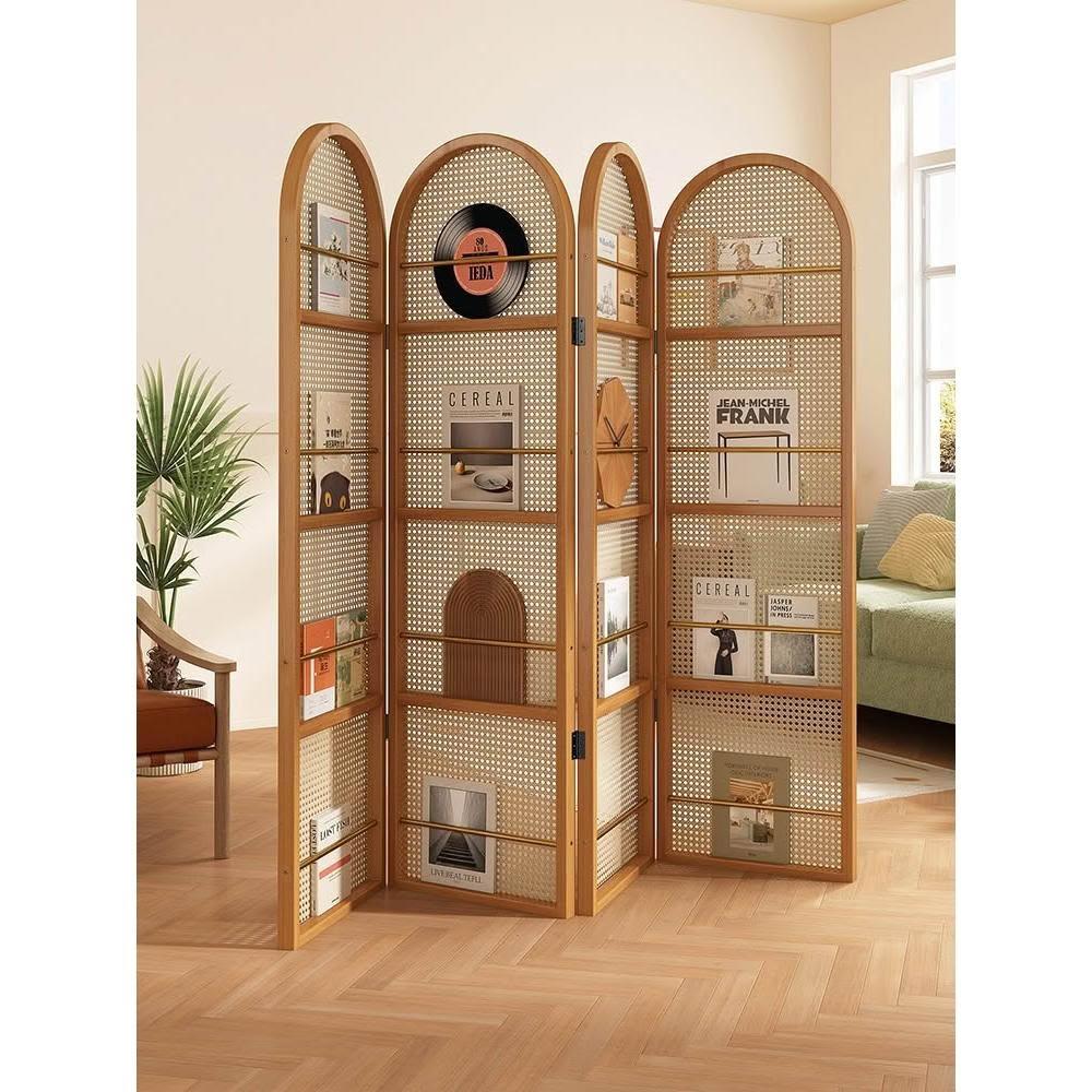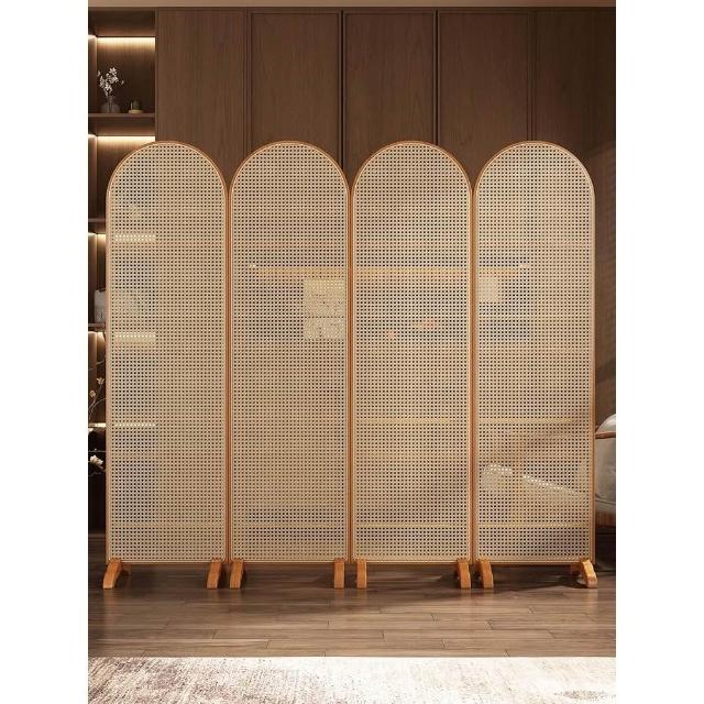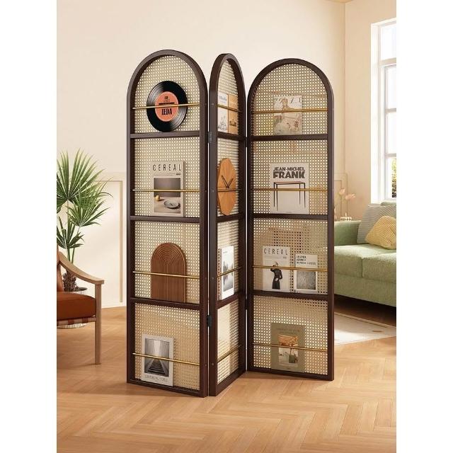 質量保證🔥藤編屏風隔斷客廳折疊可移動 實木小戶型遮擋入戶簡約雜誌書架