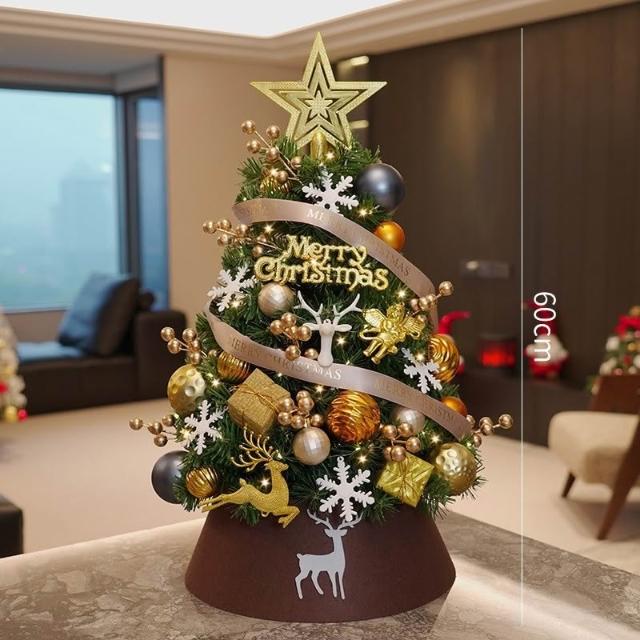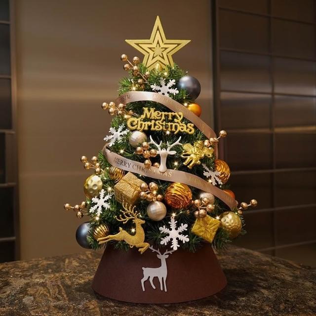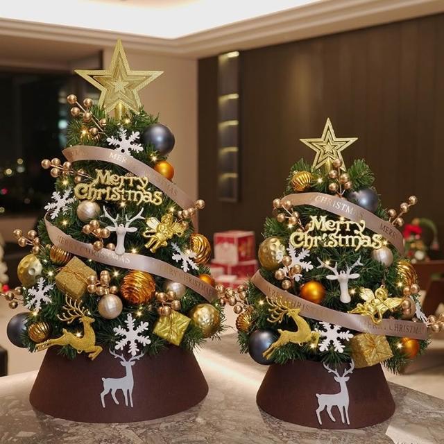 迷你聖誕樹套裝擺設 diy聖誕節 桌面家用金咖聖誕樹 裝飾小擺件
