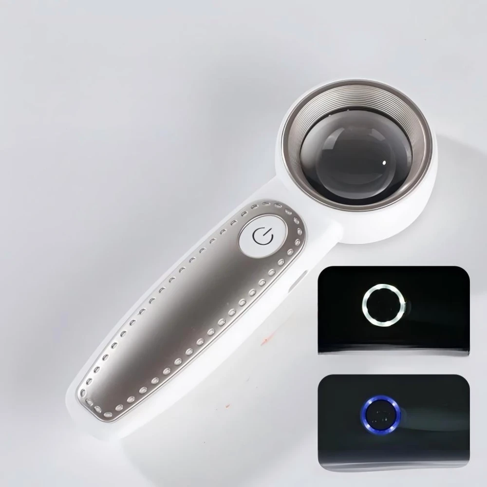 60倍放大鏡 白+紫 K9鏡片 帶LED燈 USB充電 鑒定放大鏡 電子維修 手持放大鏡 珠寶鑑定 專業放大鏡