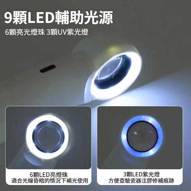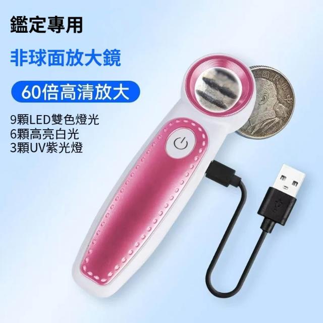 60倍放大鏡 白+紫 K9鏡片 帶LED燈 USB充電 鑒定放大鏡 電子維修 手持放大鏡 珠寶鑑定 專業放大鏡