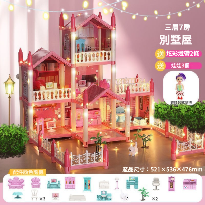 DIY公主屋 女孩過家家玩具 娃娃屋 城堡別墅 女童拼裝房子