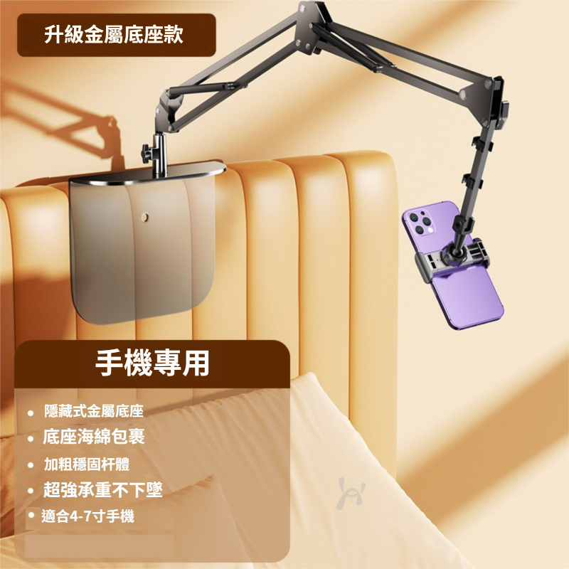 隱藏式床頭手機支架 懶人免夾平板電腦俯拍支架 金屬懸臂智能刷抖音追劇