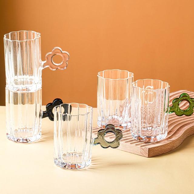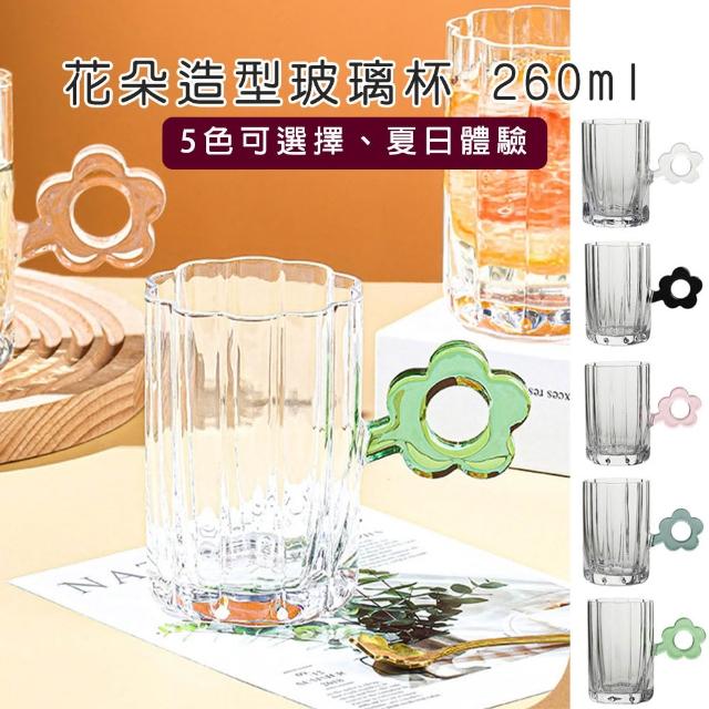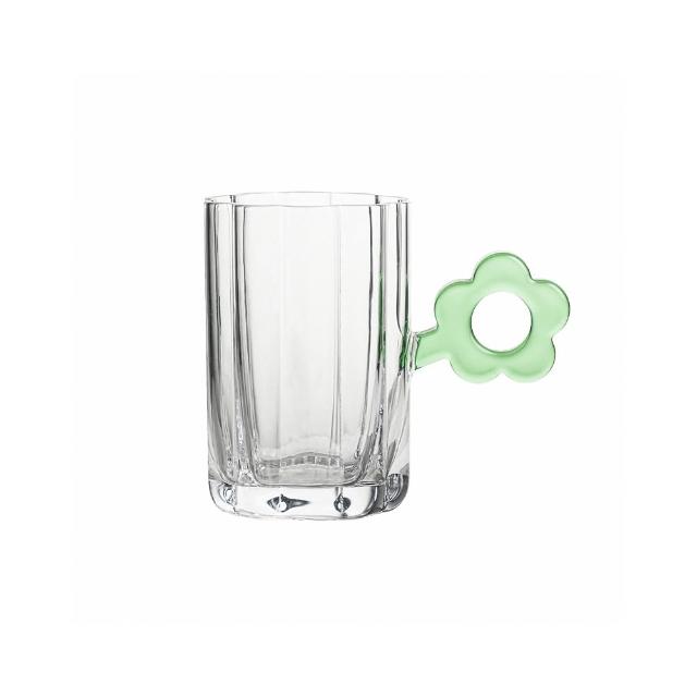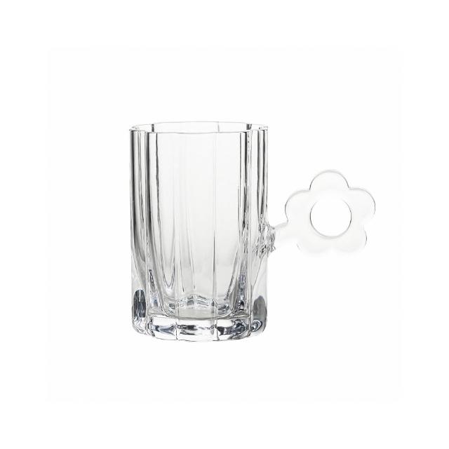 花朵造型玻璃杯 260ml|耐熱果汁水杯/花型杯口/可愛花把手杯
