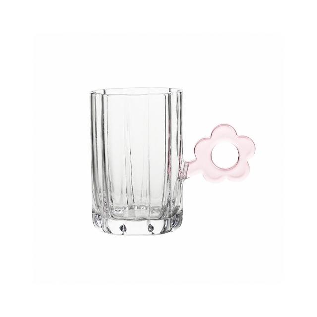 花朵造型玻璃杯 260ml|耐熱果汁水杯/花型杯口/可愛花把手杯