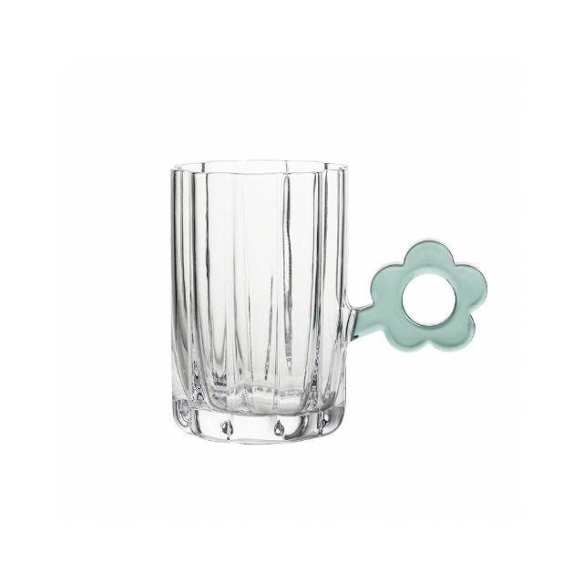 花朵造型玻璃杯 260ml|耐熱果汁水杯/花型杯口/可愛花把手杯