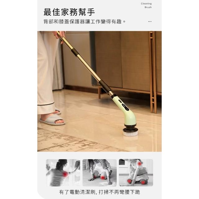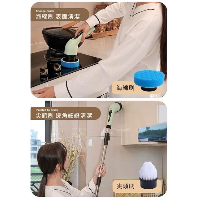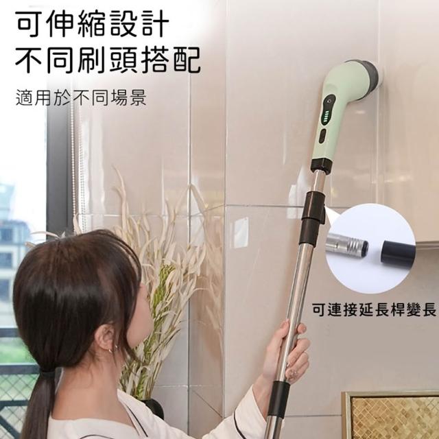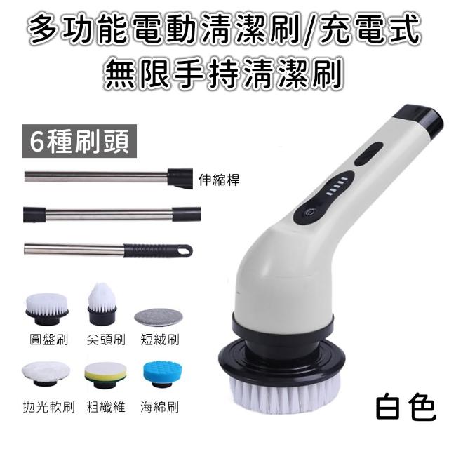 電動清潔刷|多功能6刷頭組|無線手持|可伸縮刷柄|充電式清潔機|白色