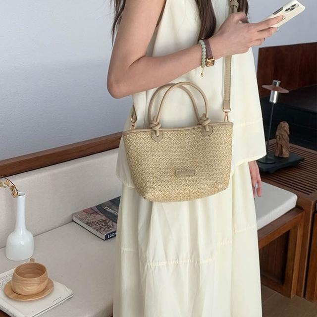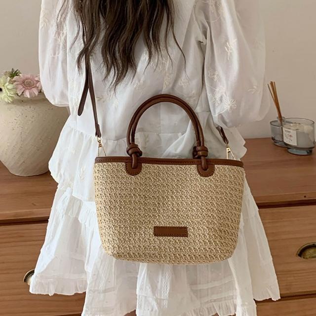 夏日草編手提斜背包|韓系編織包|小巧百搭草包|草編手提包|編織斜背包