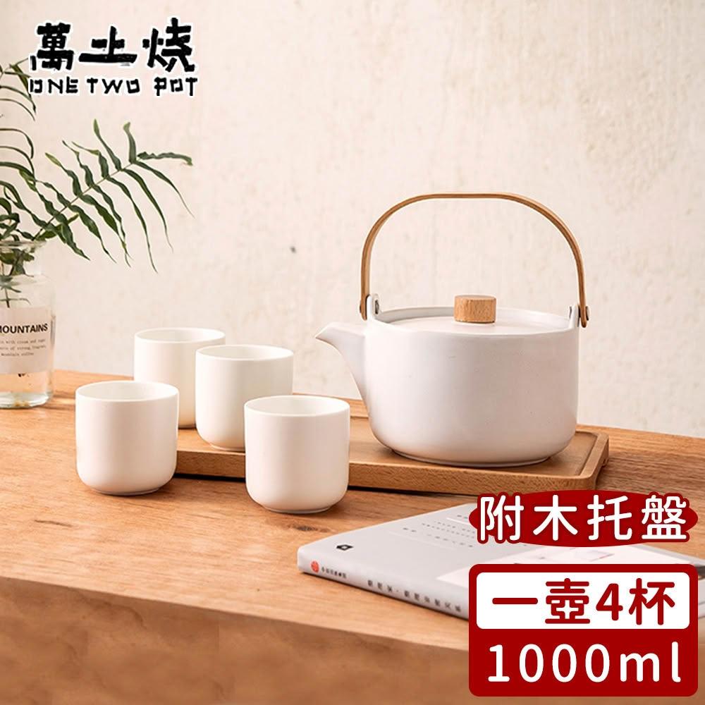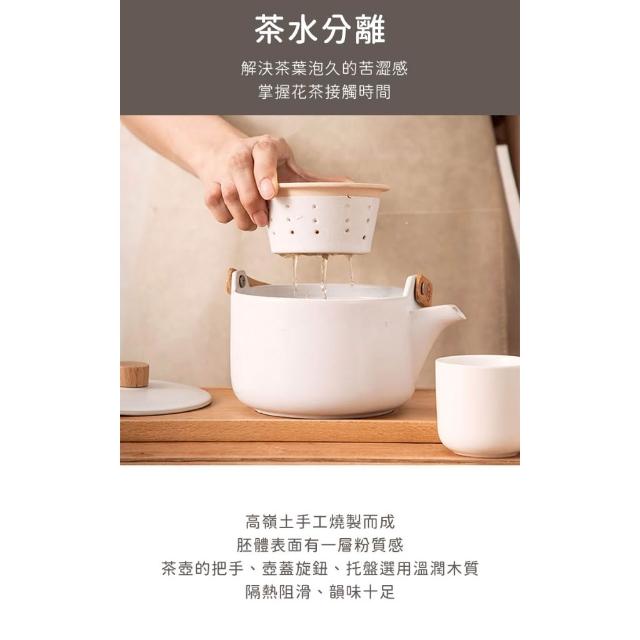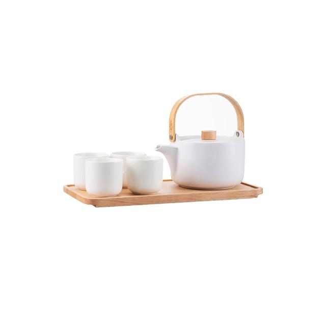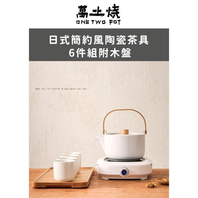 陶瓷茶具6件組附木盤|日式簡約風茶杯|泡茶壺|茶具套裝|茶壺|茶杯|會客送禮