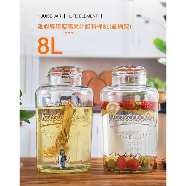 玻璃飲料桶3.5L/4L/6L/8L|304不鏽鋼龍頭+鐵架|派對桶|果汁桶|冷水壺|泡酒桶