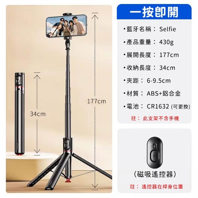 一按即開折疊自拍桿|落地三腳架