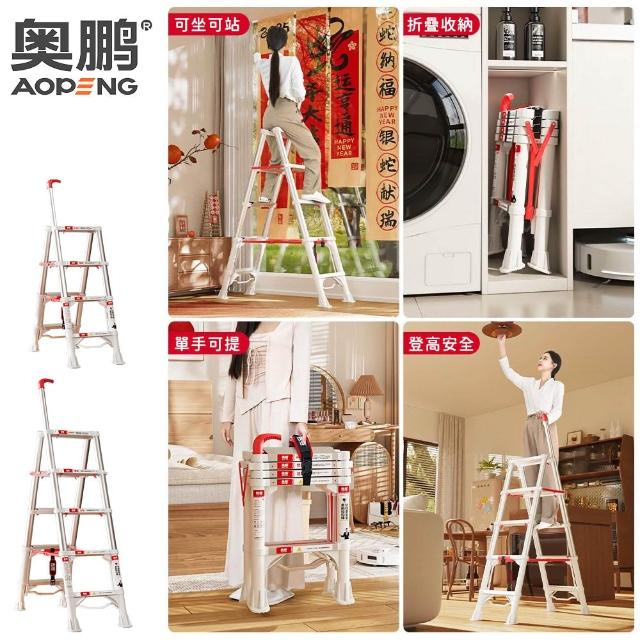 奧鵬AOPENG 家用鋁合金伸縮 四步梯/五步梯 便攜折疊梯子