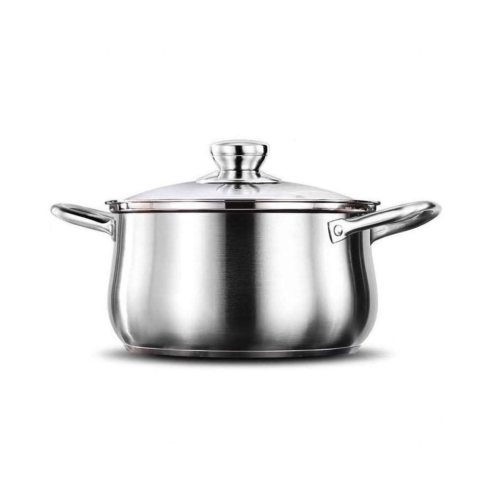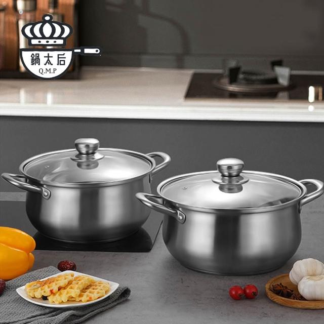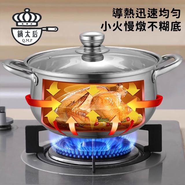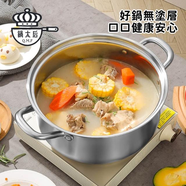 304不鏽鋼深湯鍋 24.26cm|雙耳設計|附玻璃鍋蓋|火鍋適用