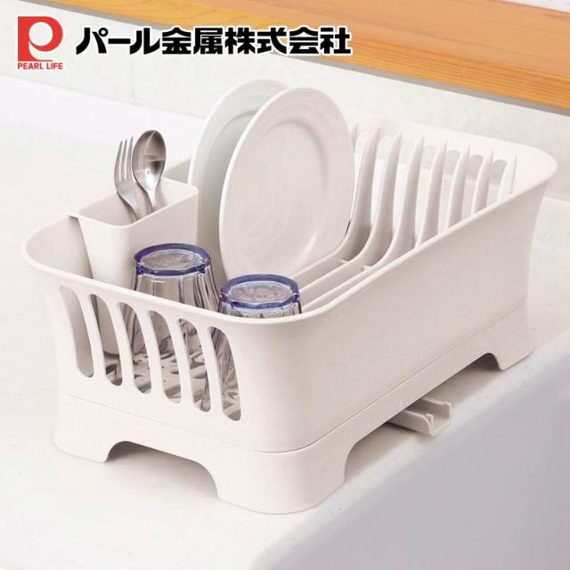 Pearl Life 珍珠金屬日本製 不鏽鋼碗盤瀝水架 (附餐具筒) 自動排水/防霉 廚房收納架 瀝水籃