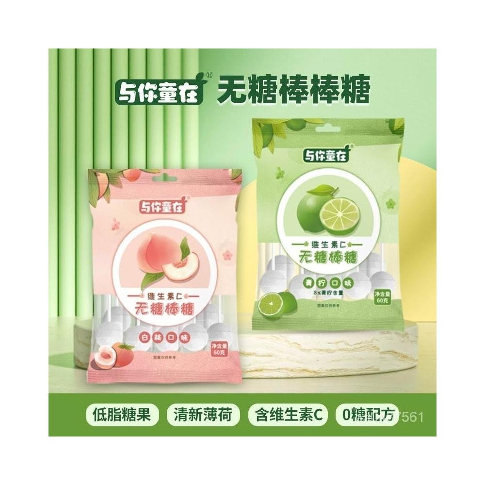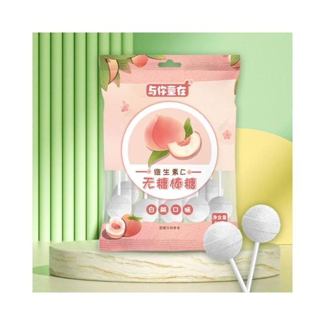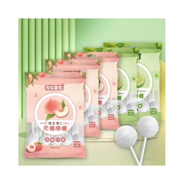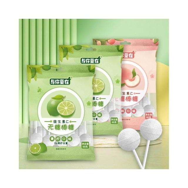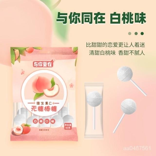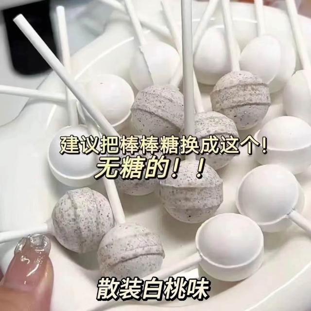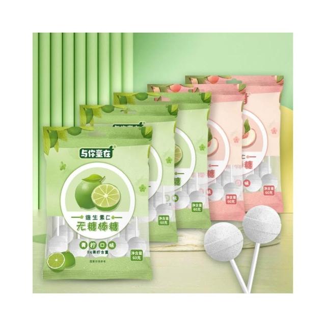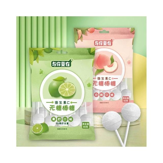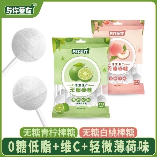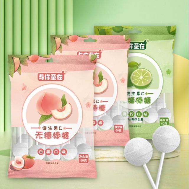 8%果肉粉+維C無糖青檸棒棒糖白桃味無糖糖果0蔗糖0色素解饞小零食