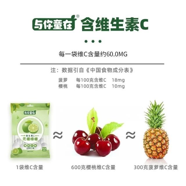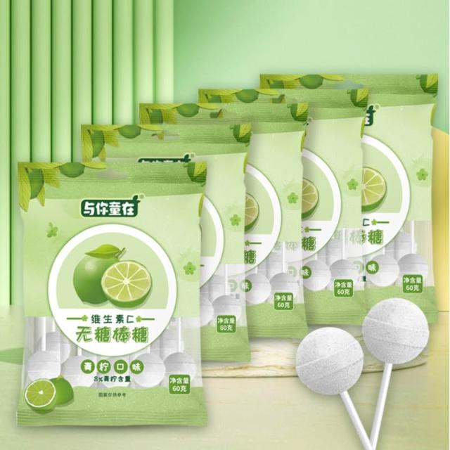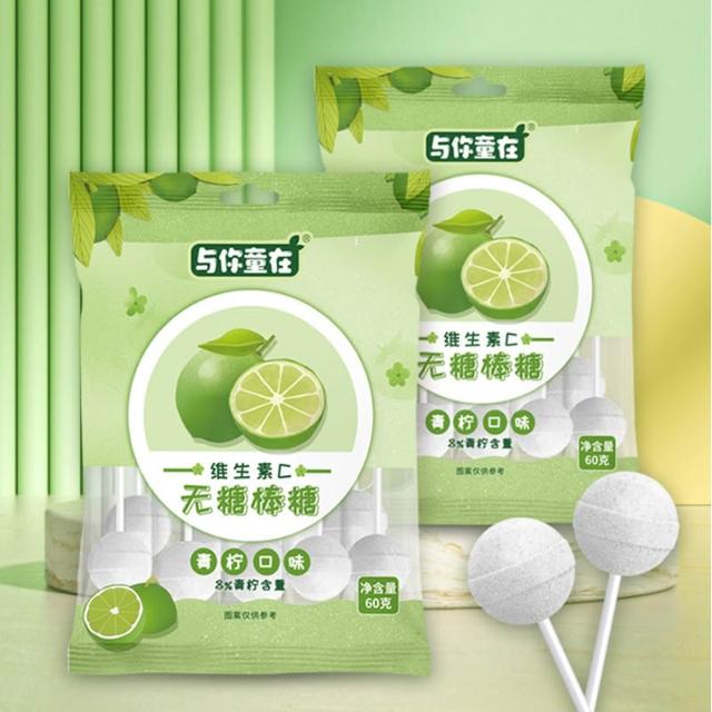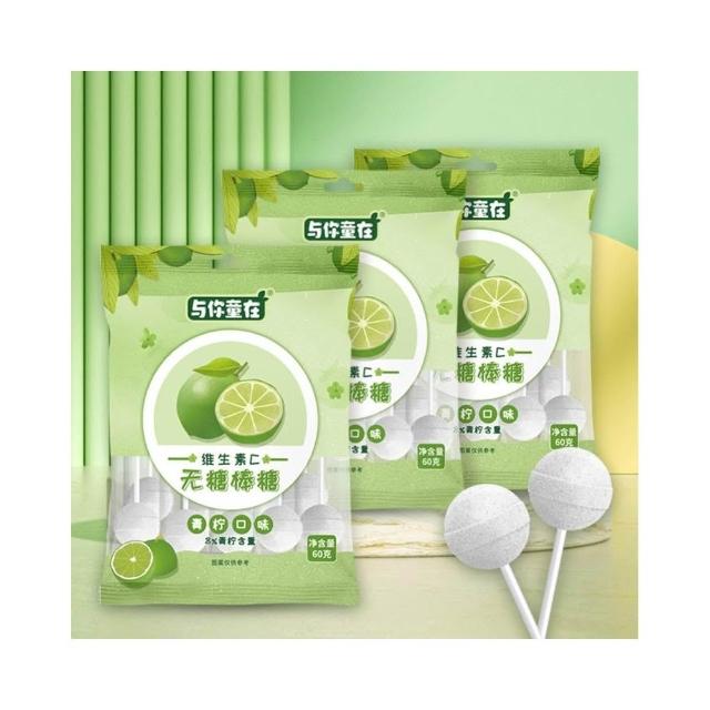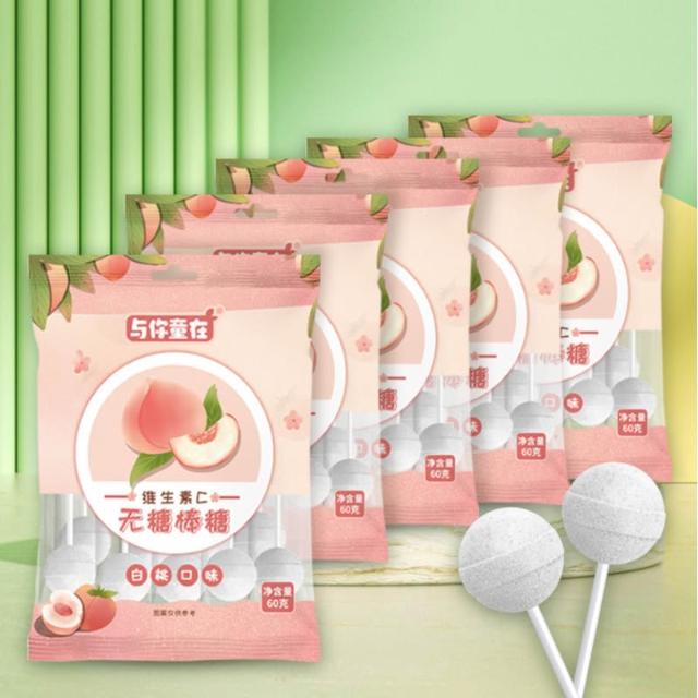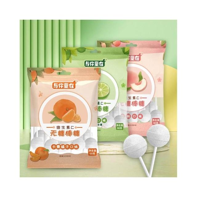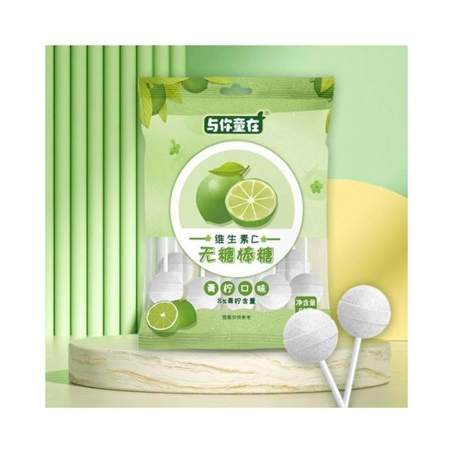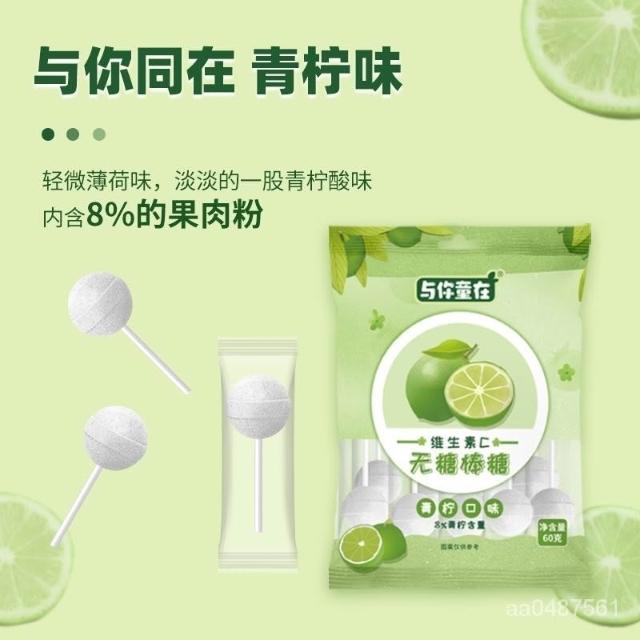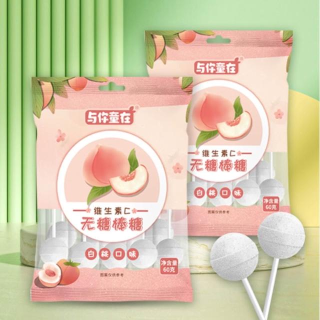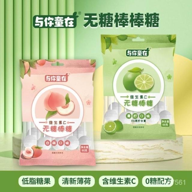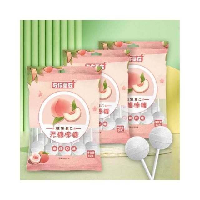 8%果肉粉+維C無糖青檸棒棒糖白桃味無糖糖果0蔗糖0色素解饞小零食