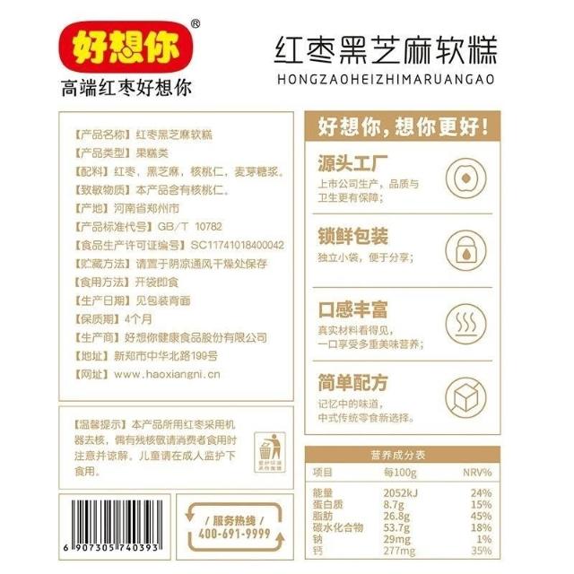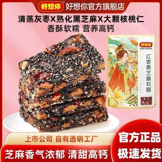 可嘉優選芝麻棗糕 好想你168g红枣黑芝麻软糕核桃切糕软糕传统滋补孕妇零食送长辈