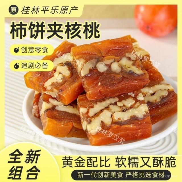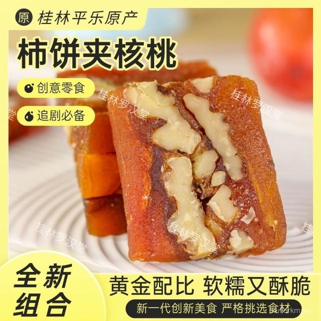 廣西平樂柿餅夾芒果柿餅夾核桃辦公室網紅零食柿餅捲核桃糕切片