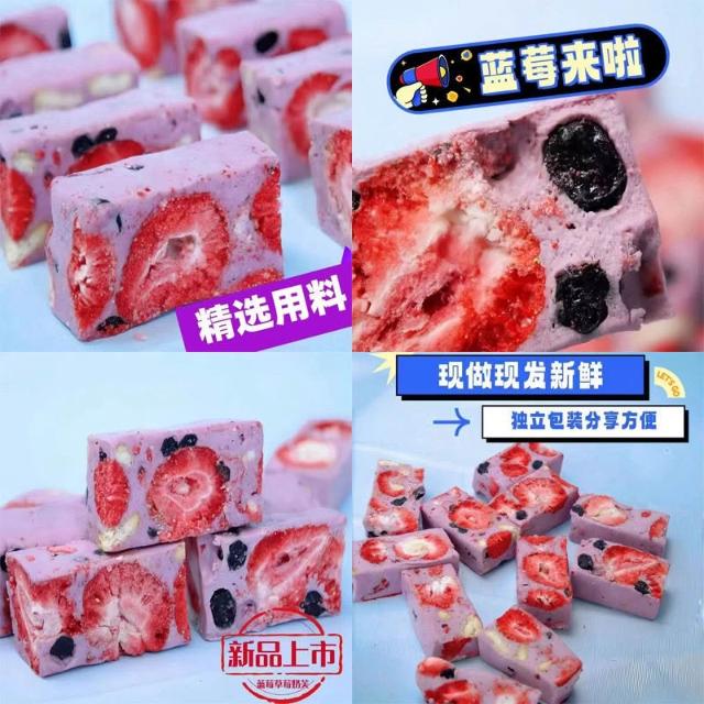 可嘉優選草莓藍莓羊奶芙酸甜 休閒零食拉絲奶酥網紅糕點 酥軟酸甜解饞小零食
