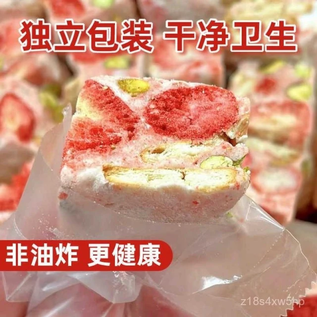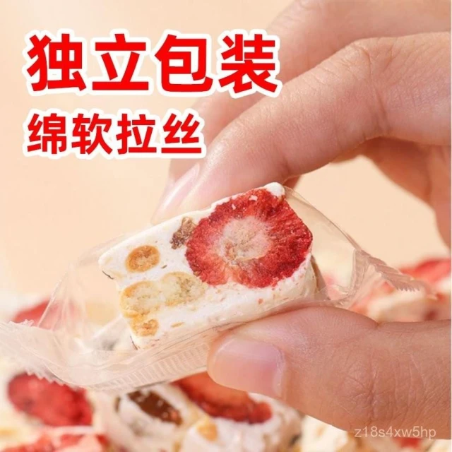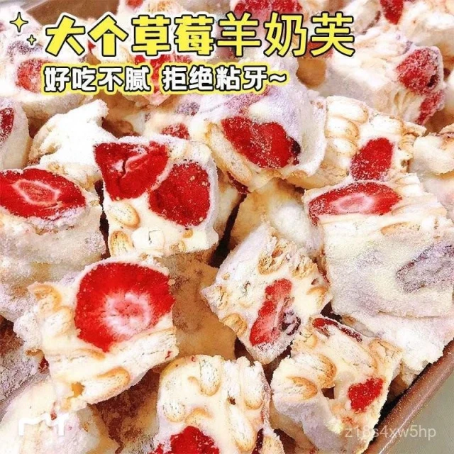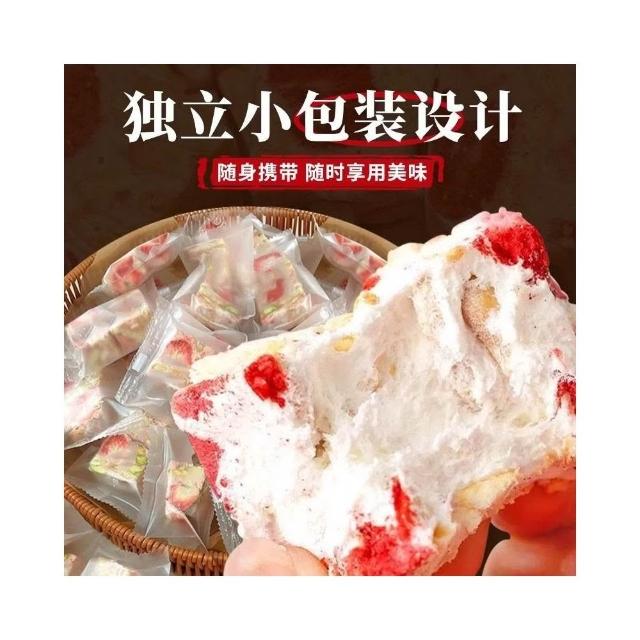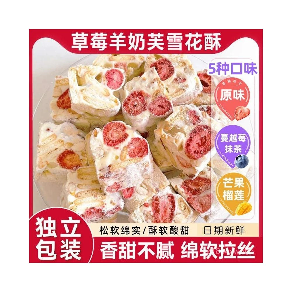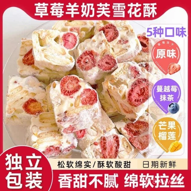 可嘉優選草莓羊奶芙手工雪花酥 拉絲糕點牛軋糖 網紅休閒零食