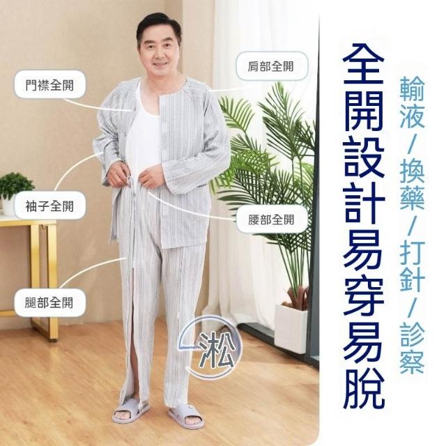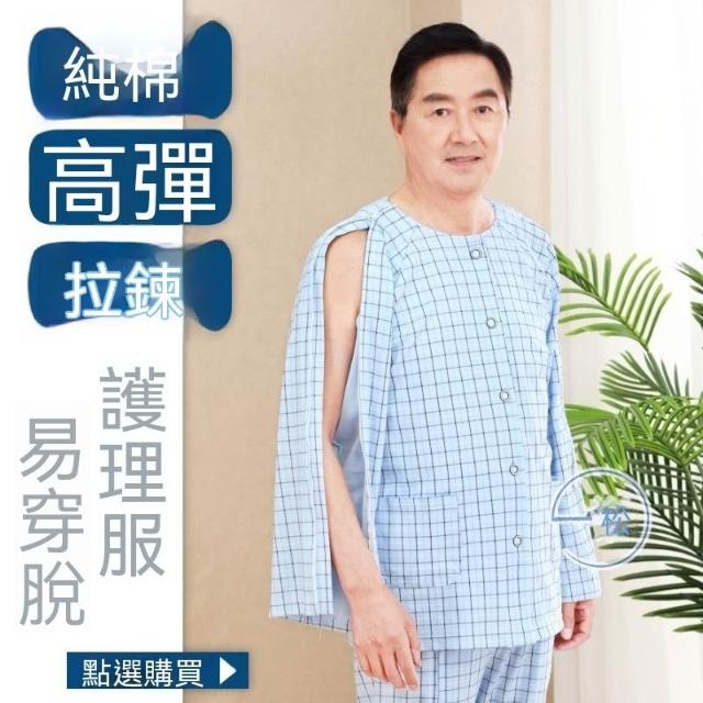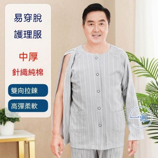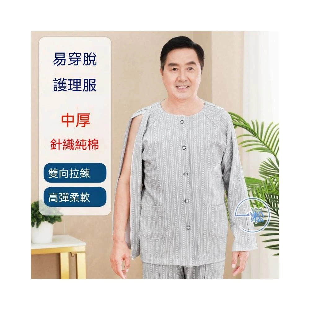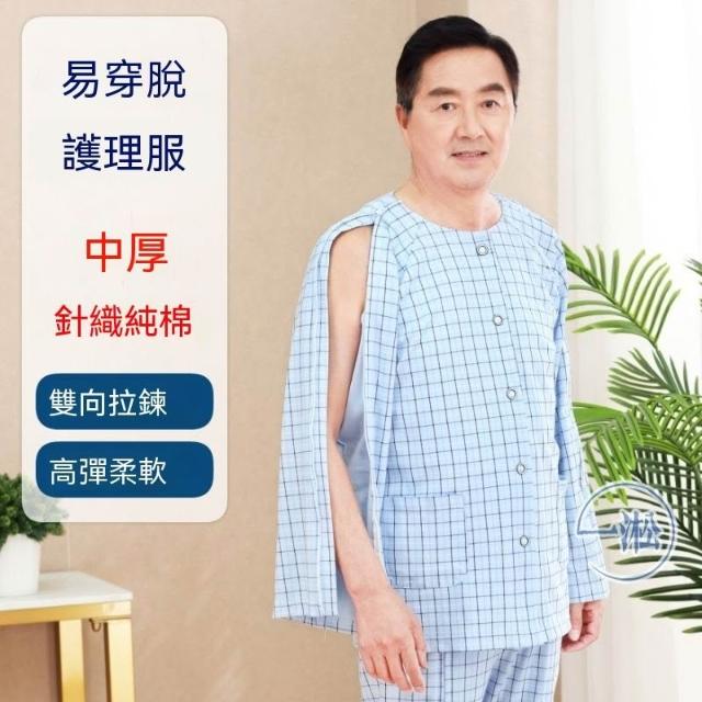 可嘉優選春秋易穿脫護理服臥牀癱瘓老人病號服男款拉鍊手臂骨折術後專用衣