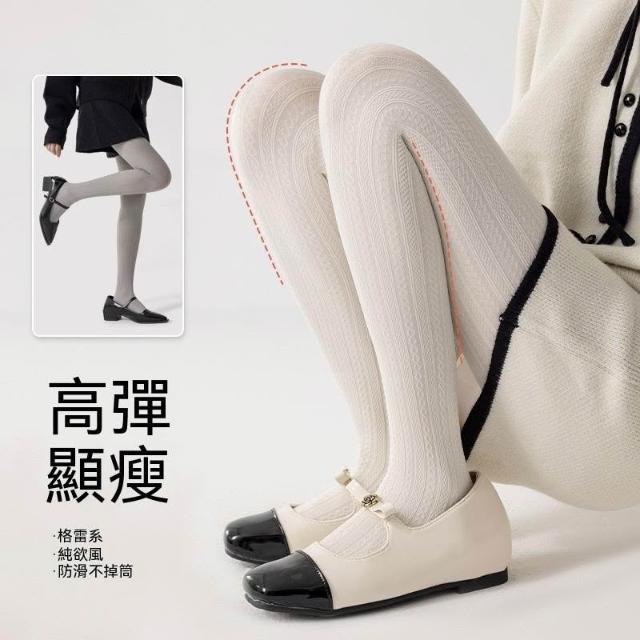 可嘉優選春秋新款女顯瘦連褲襪外穿豎條紋塑形打底襪芭蕾風花紋lolita白襪
