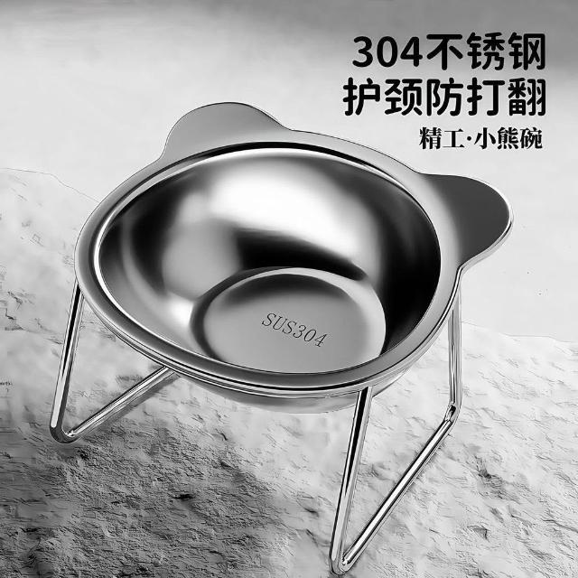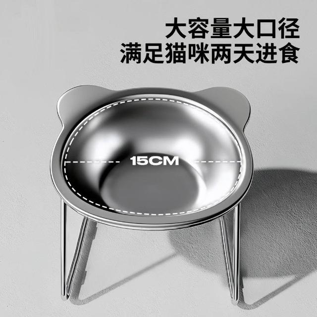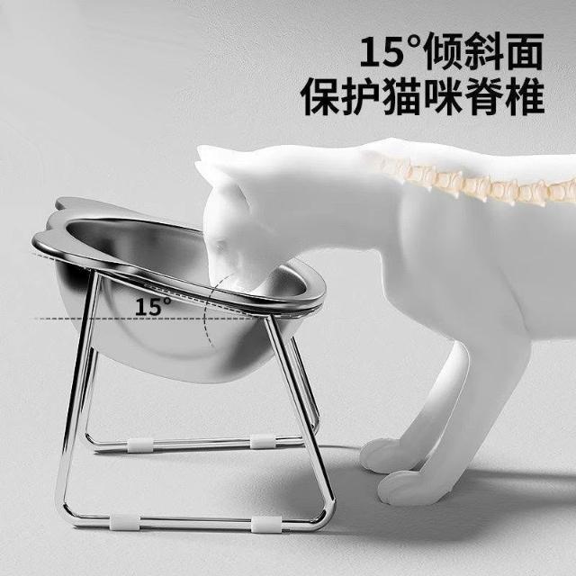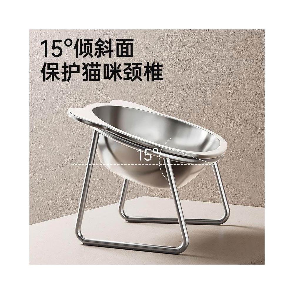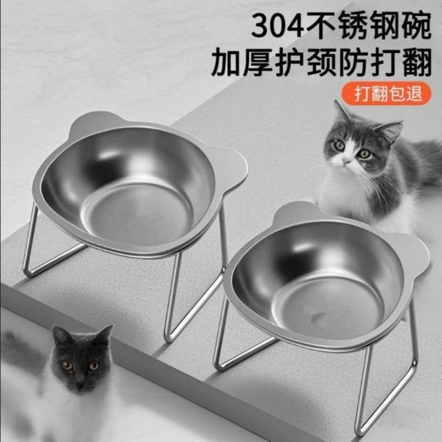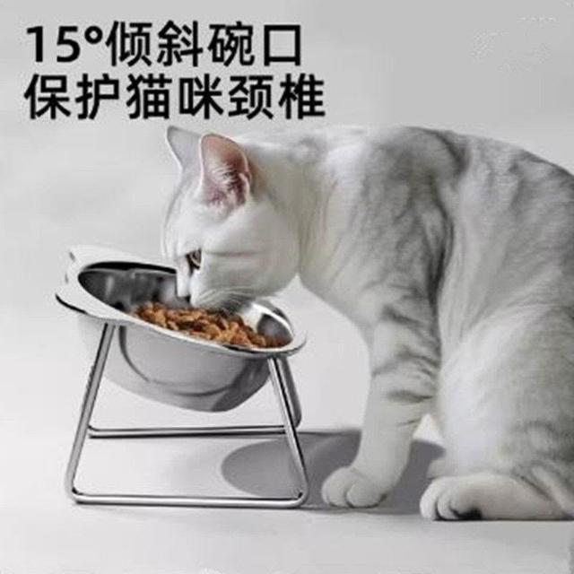 可嘉優選升級打翻保護頸椎貓咪飯碗304不鏽鋼增高斜口喝水糧碗寵物食盆