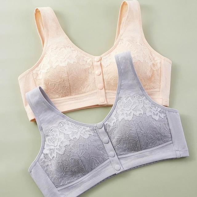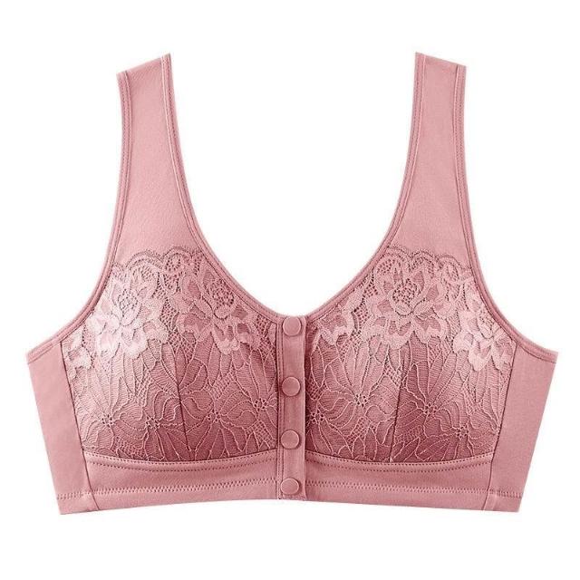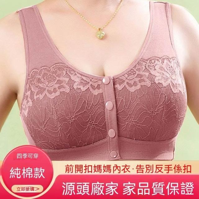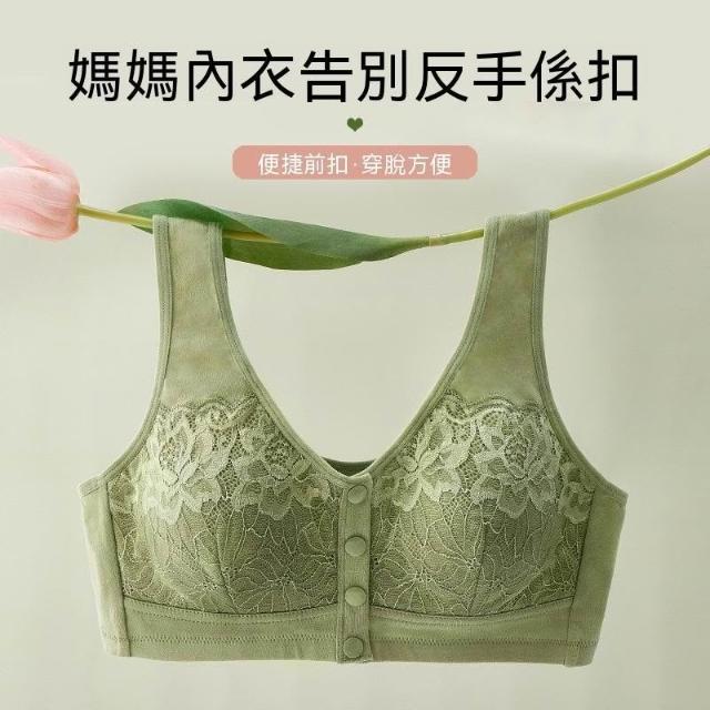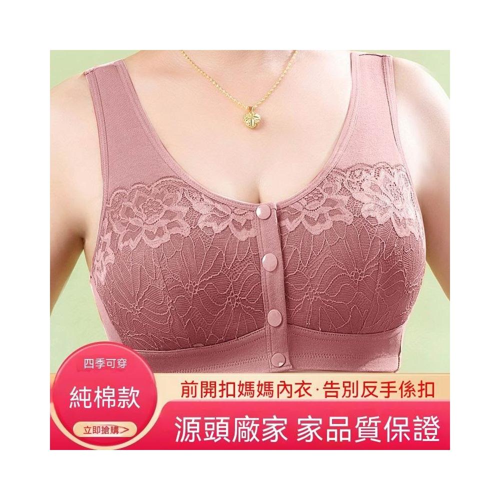 可嘉優選中老年前開扣背心式文胸中年婦女棉質親膚大碼胸罩媽媽內衣無鋼圈