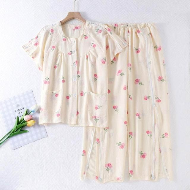 可嘉優選成人夏季病號服套裝骨折臥牀癱瘓病人睡衣睡褲短褲套裝雲朵棉柔軟