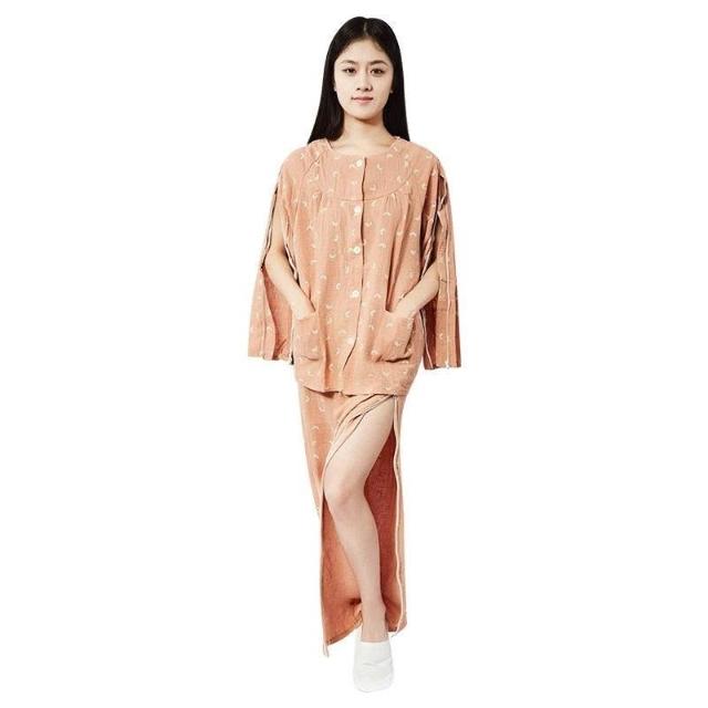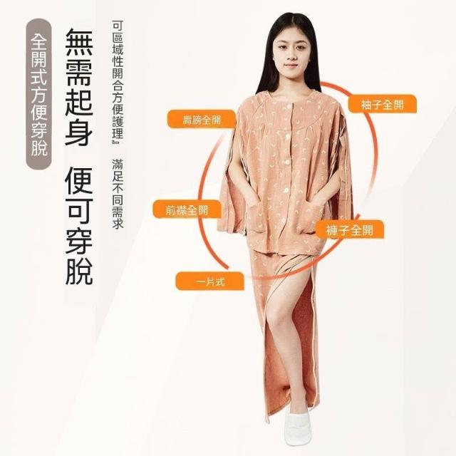 可嘉優選拉鍊臥牀紗布透氣理療服易穿脫女術後鍼灸老人癱瘓家居護理服套裝