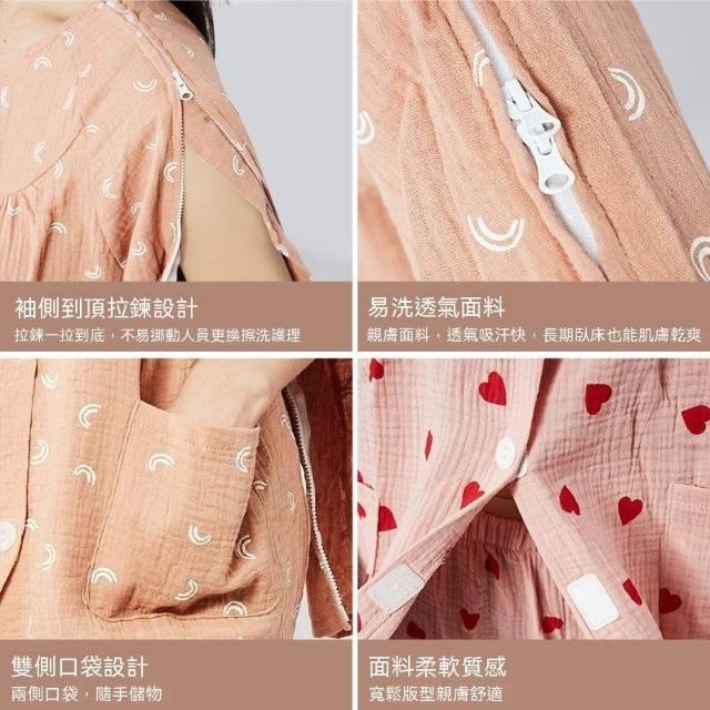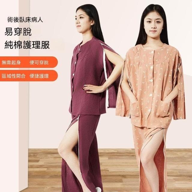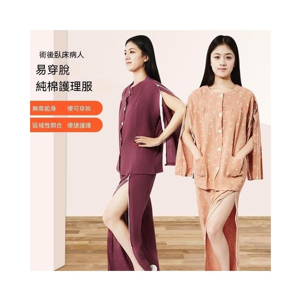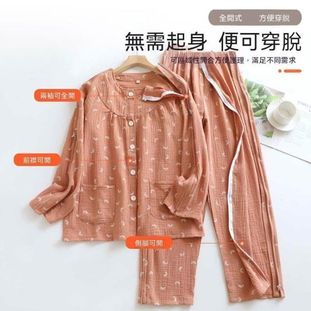 可嘉優選拉鍊臥牀紗布透氣理療服易穿脫女術後鍼灸老人癱瘓家居護理服套裝