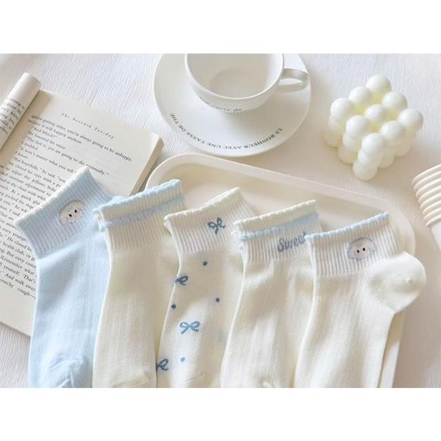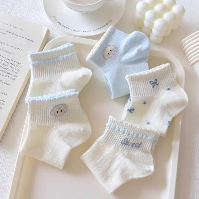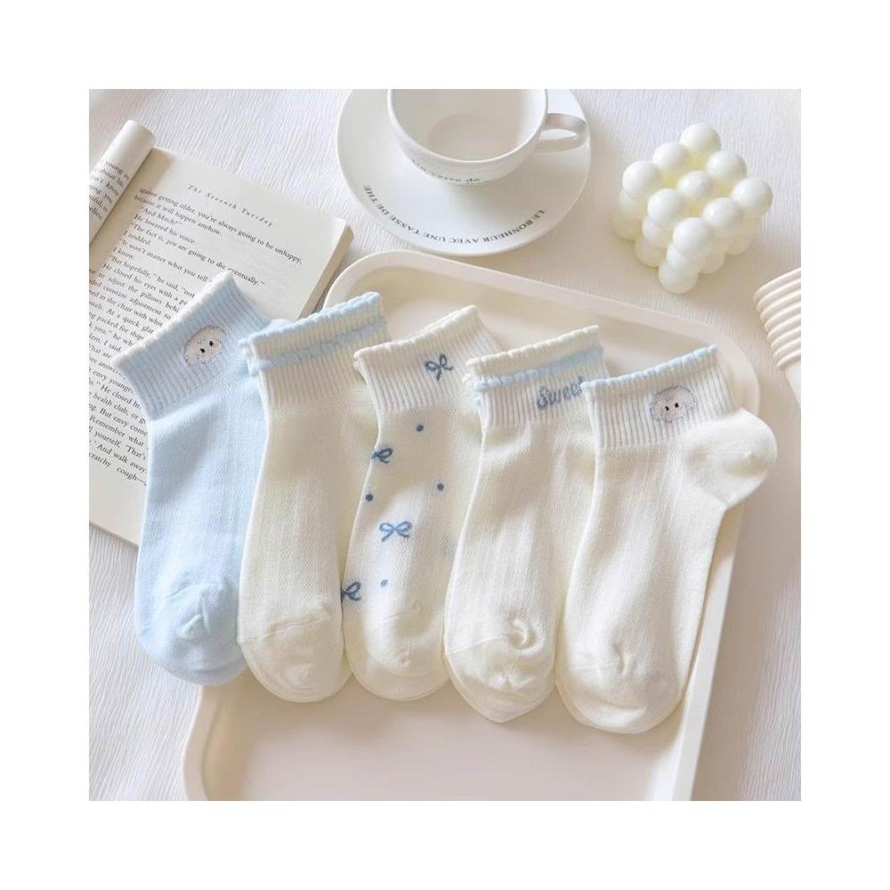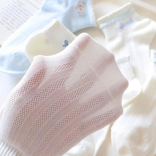 可嘉優選淺藍蝴蝶結網面襪子女短襪夏季純棉薄款透氣奶白淺口船襪甜美日系