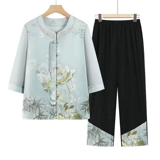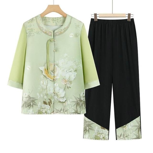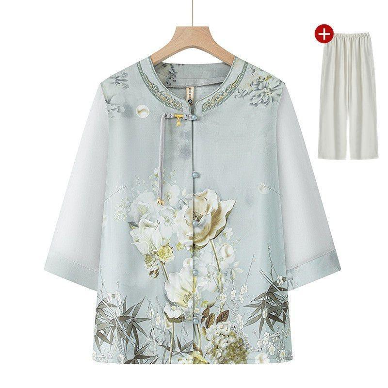 可嘉優選中老年人夏裝襯衫女奶奶春裝中袖圓領媽媽開衫薄老人太太大碼衣服