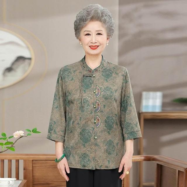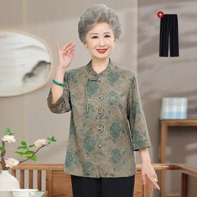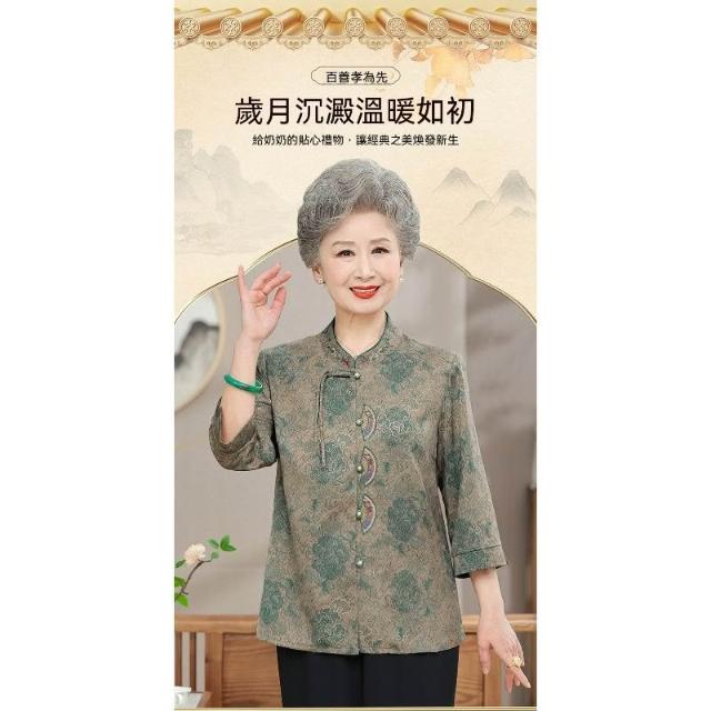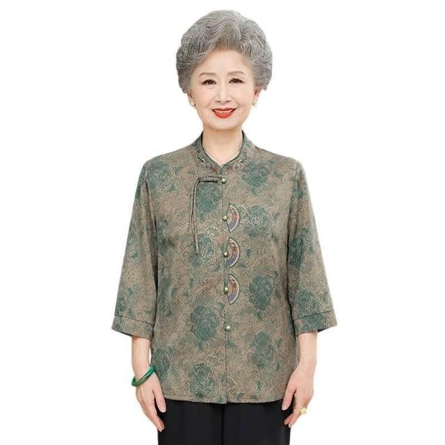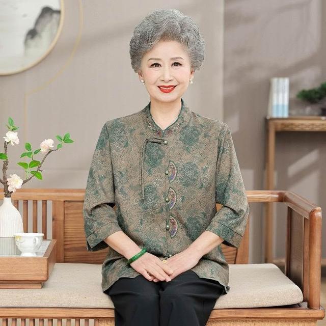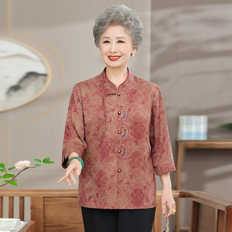 可嘉優選奶奶夏裝國風襯衫洋氣新款中老年人新中式上衣媽媽夏套裝婆婆衣服