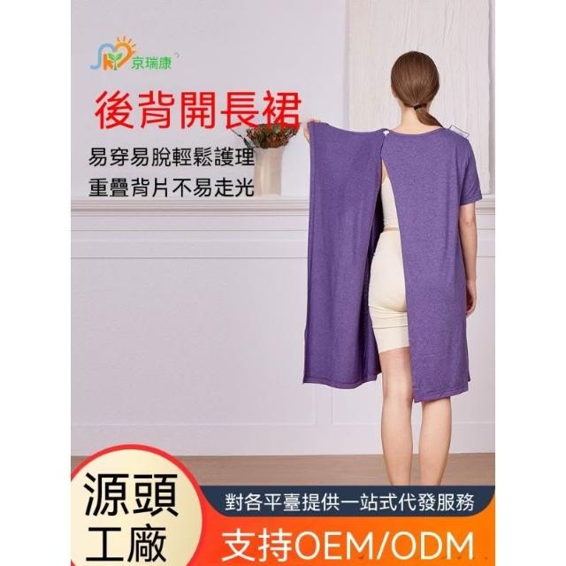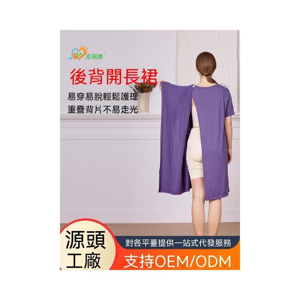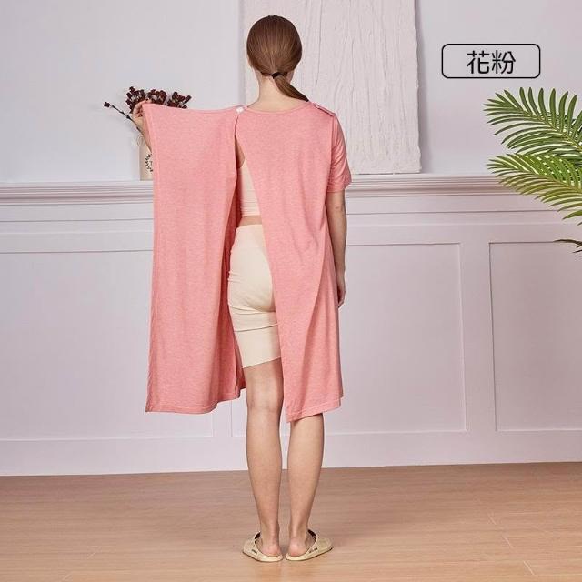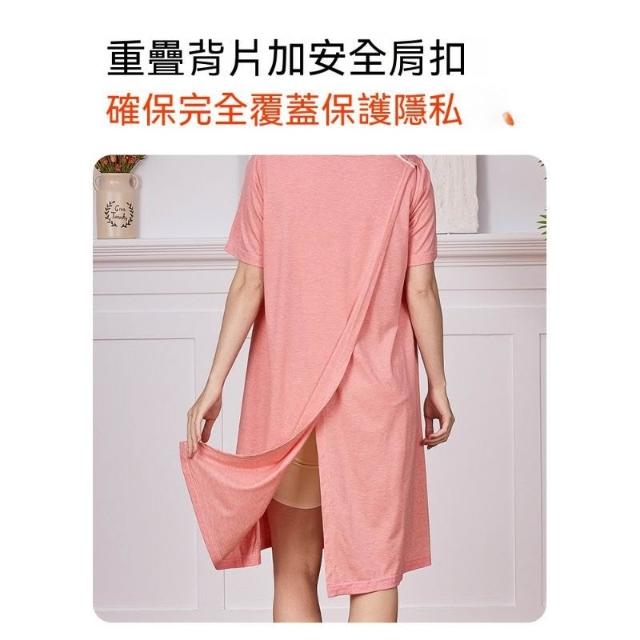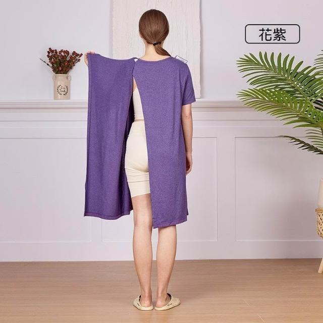 可嘉優選後背全開護理睡裙夏季女易穿易脫老人術後picc置管透析康復服短袖