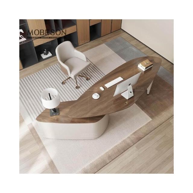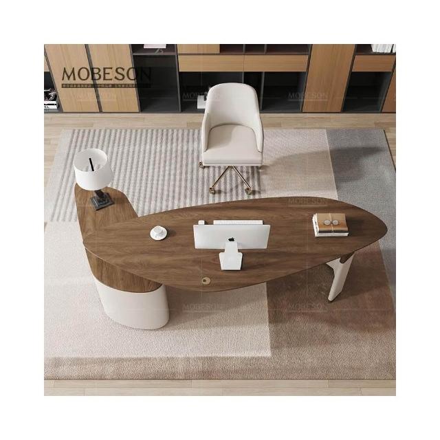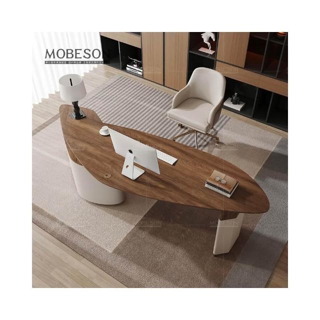 森嶼家居 設計師中古風客廳大長書桌書房實木輕奢現代大書桌異形高級辦公桌