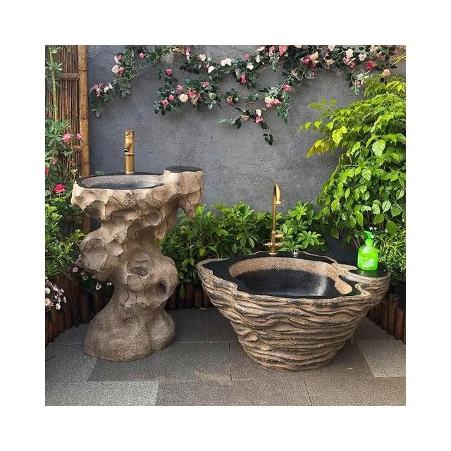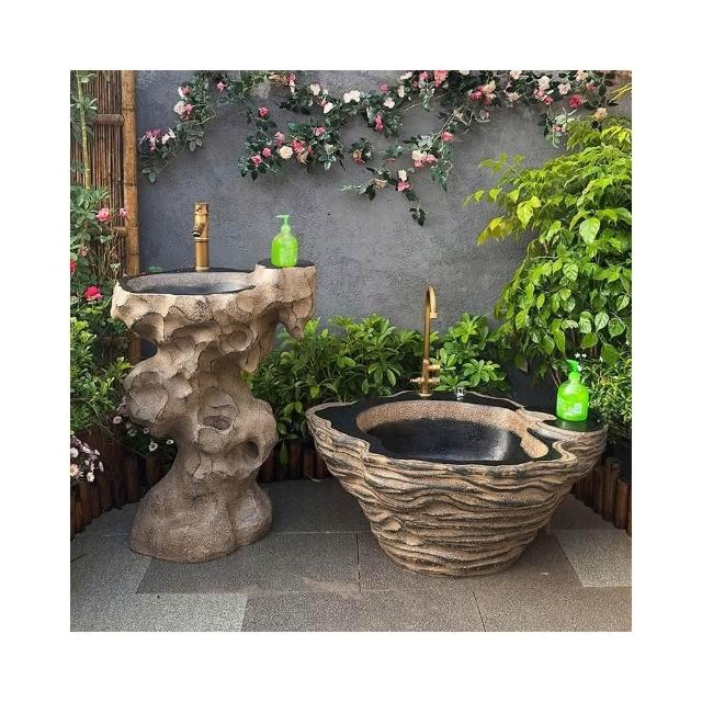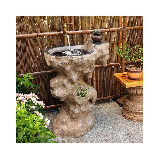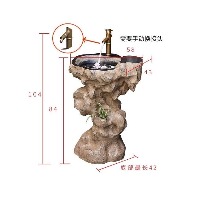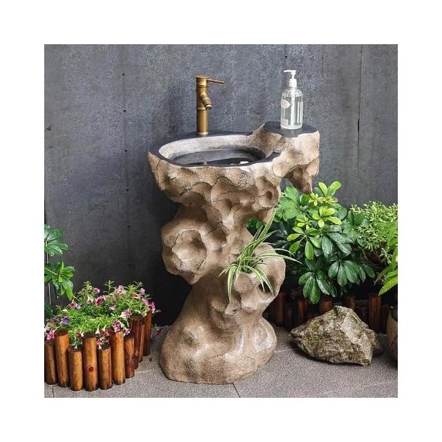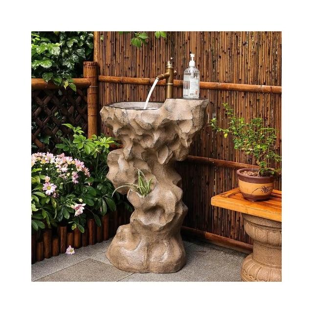 破損補寄💖戶外庭院花園 戶外洗手盆 室外陽台洗手池露台 立柱一體落地洗臉盆 仿石頭台盆 輕奢大氣洗手池