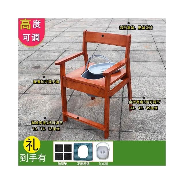 森嶼家居 老人病人實木扶手防滑坐便器 移動馬桶架子大便坐椅 坐便凳室內廁所