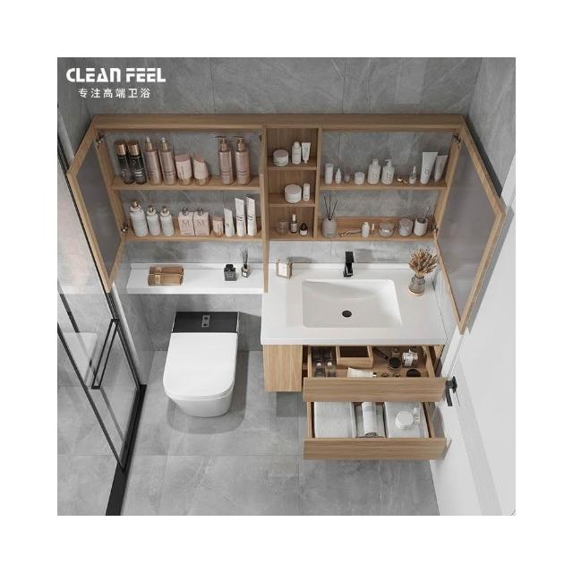 森嶼家居 現代簡約浴室櫃組合岩板一體 馬桶延長洗漱台衛生間 洗臉洗手盆定製
