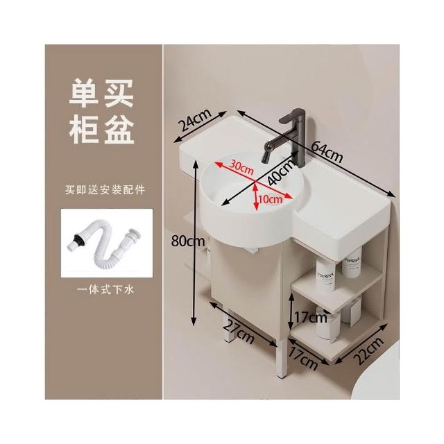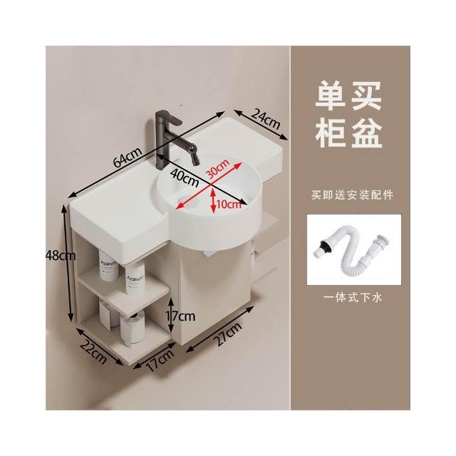 森嶼家居 小戶型奶油風掛牆式 陶瓷洗手盆櫃組合落地式實木浴室櫃 馬桶洗臉盆