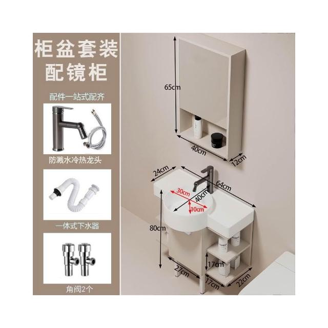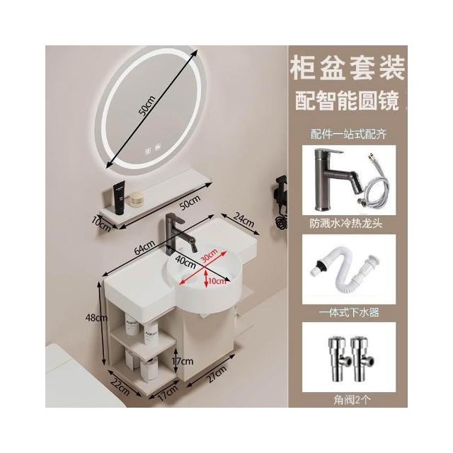 森嶼家居 小戶型奶油風掛牆式 陶瓷洗手盆櫃組合落地式實木浴室櫃 馬桶洗臉盆