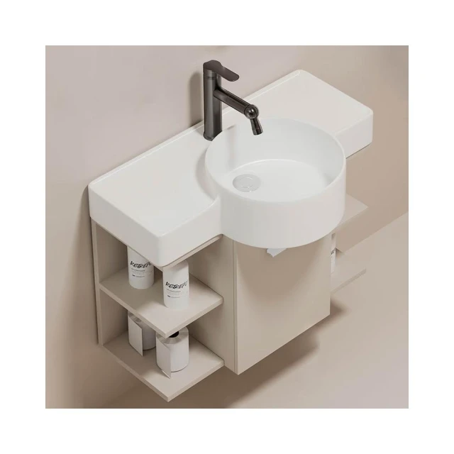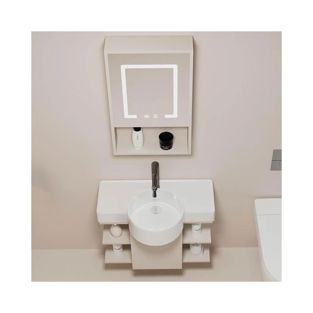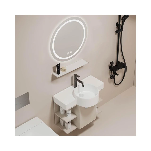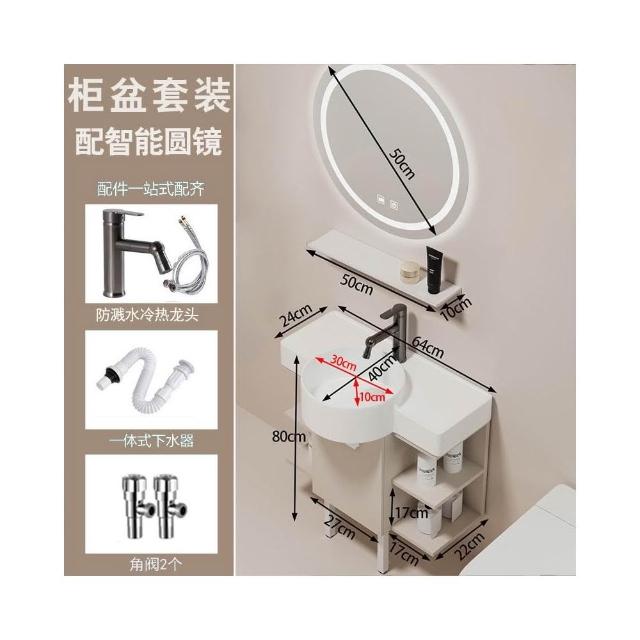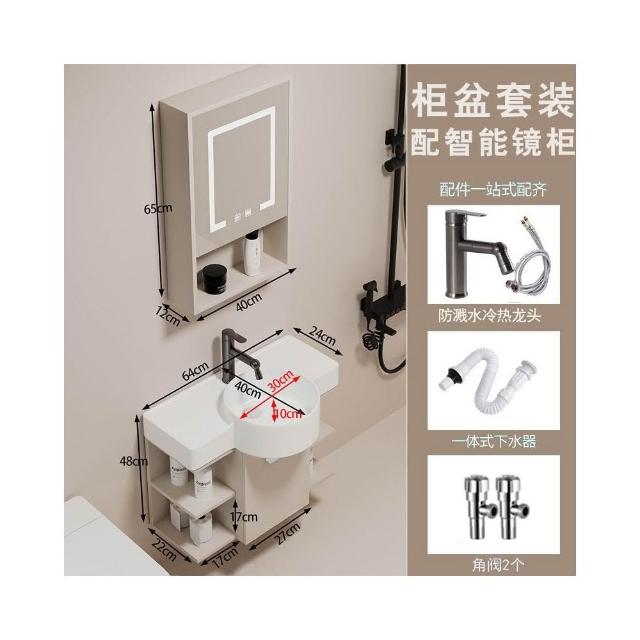 森嶼家居 小戶型奶油風掛牆式 陶瓷洗手盆櫃組合落地式實木浴室櫃 馬桶洗臉盆