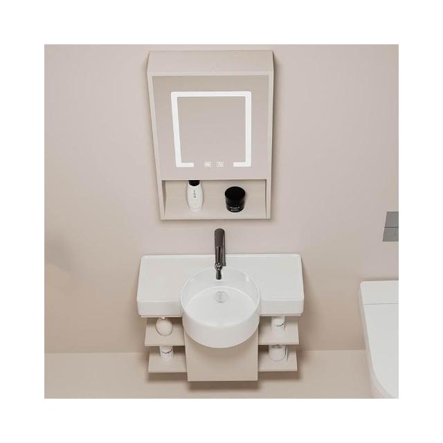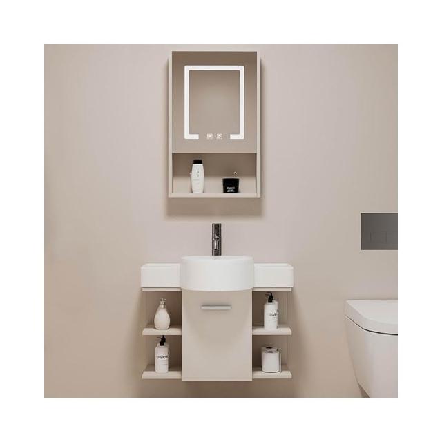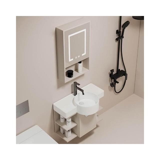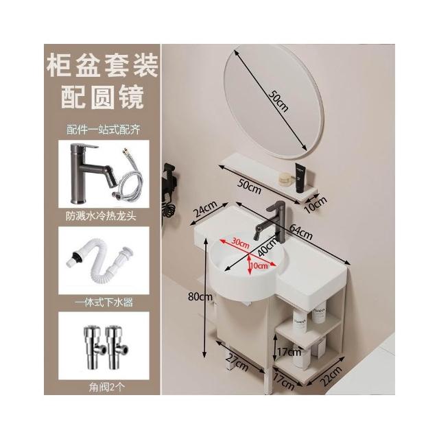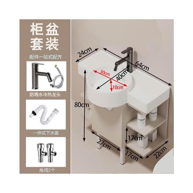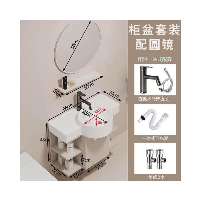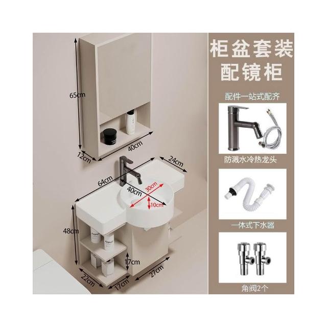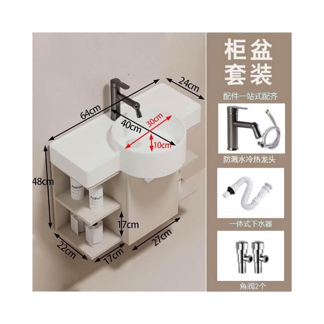 森嶼家居 小戶型奶油風掛牆式 陶瓷洗手盆櫃組合落地式實木浴室櫃 馬桶洗臉盆