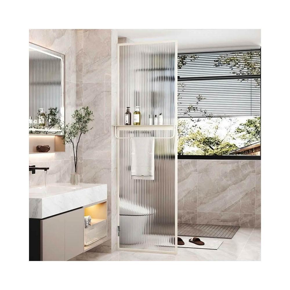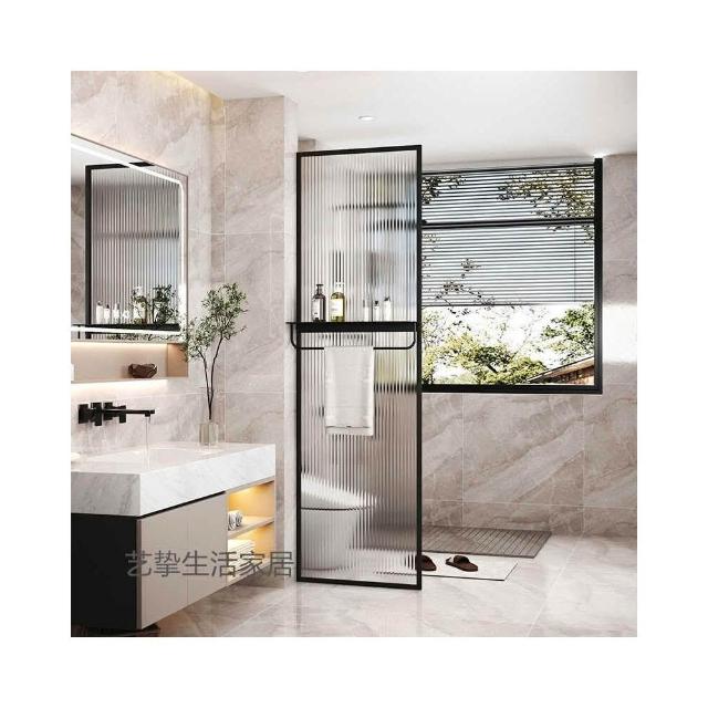 艾萊斯衛浴 卫生间隔断 现代简约不锈钢 置物玻璃屏风 奶油风淋浴房 干湿分离隔断马桶旁遮挡