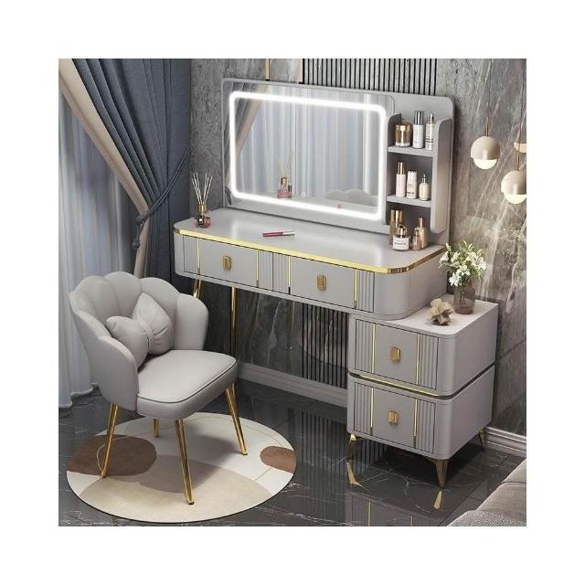 輕奢風女生梳妝檯 臥室化妝台 現代簡約2025新款梳妝桌書桌床邊斗櫃收納一體式 學習辦公桌工作台 簡約化妝桌子學生寫字台